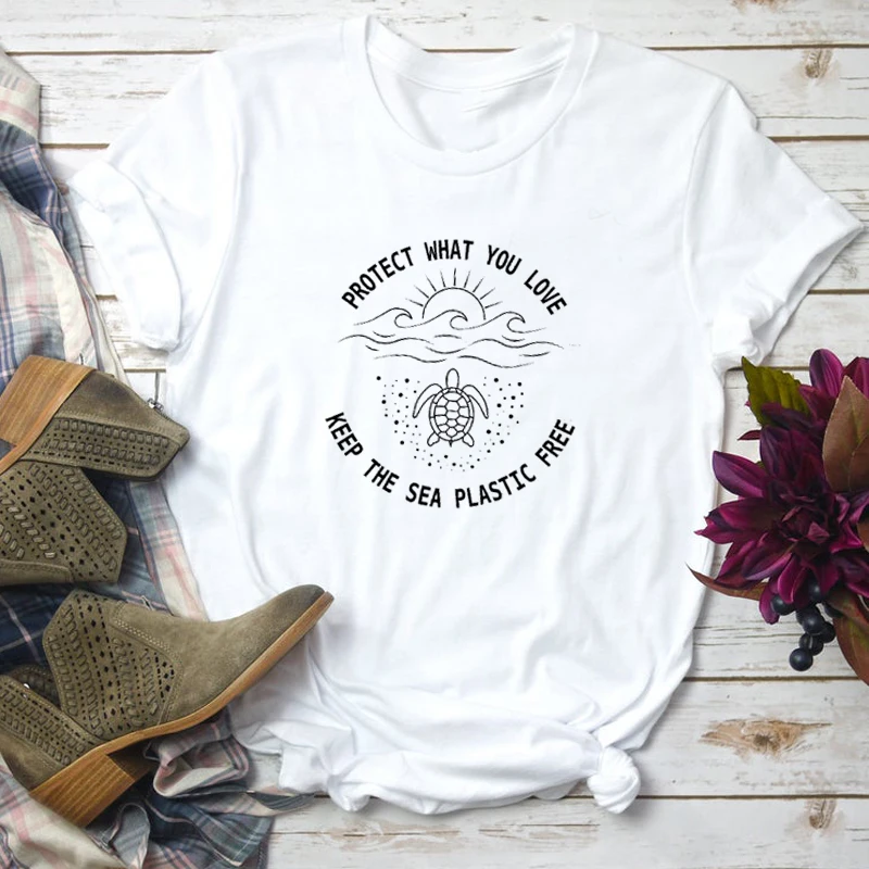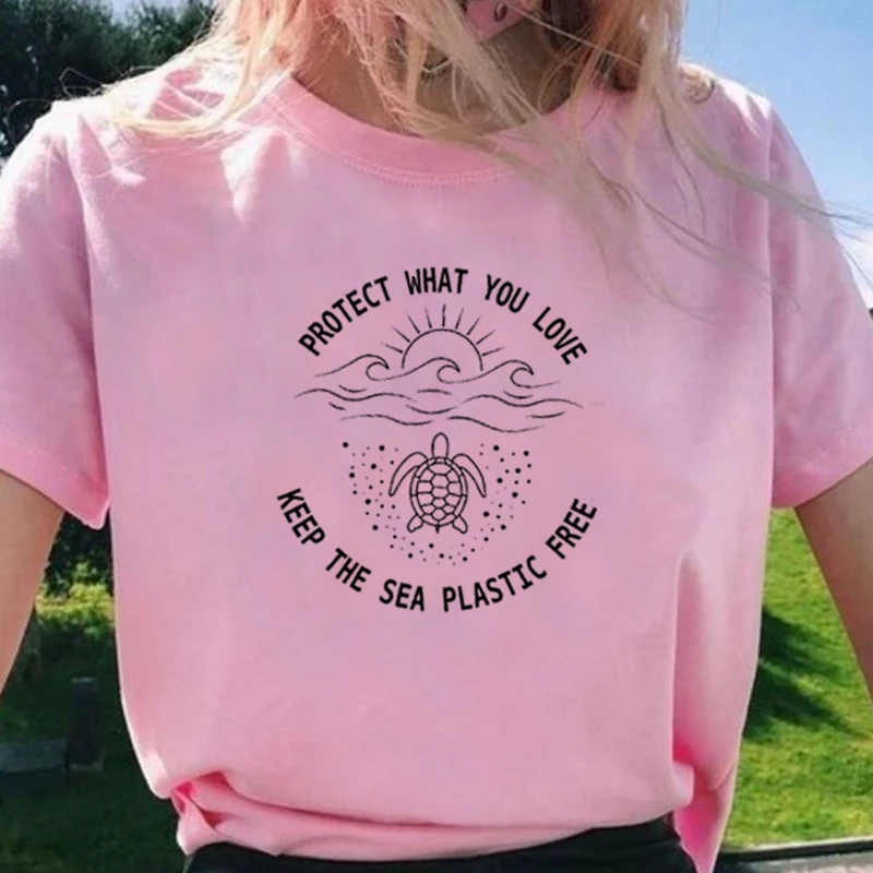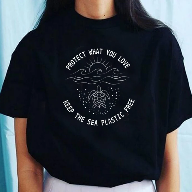 Женская футболка с надписью «Keep The Sea Plastic Free», футболка с принтом «Save A Turtle», хлопковые летние топы, Прямая поставка