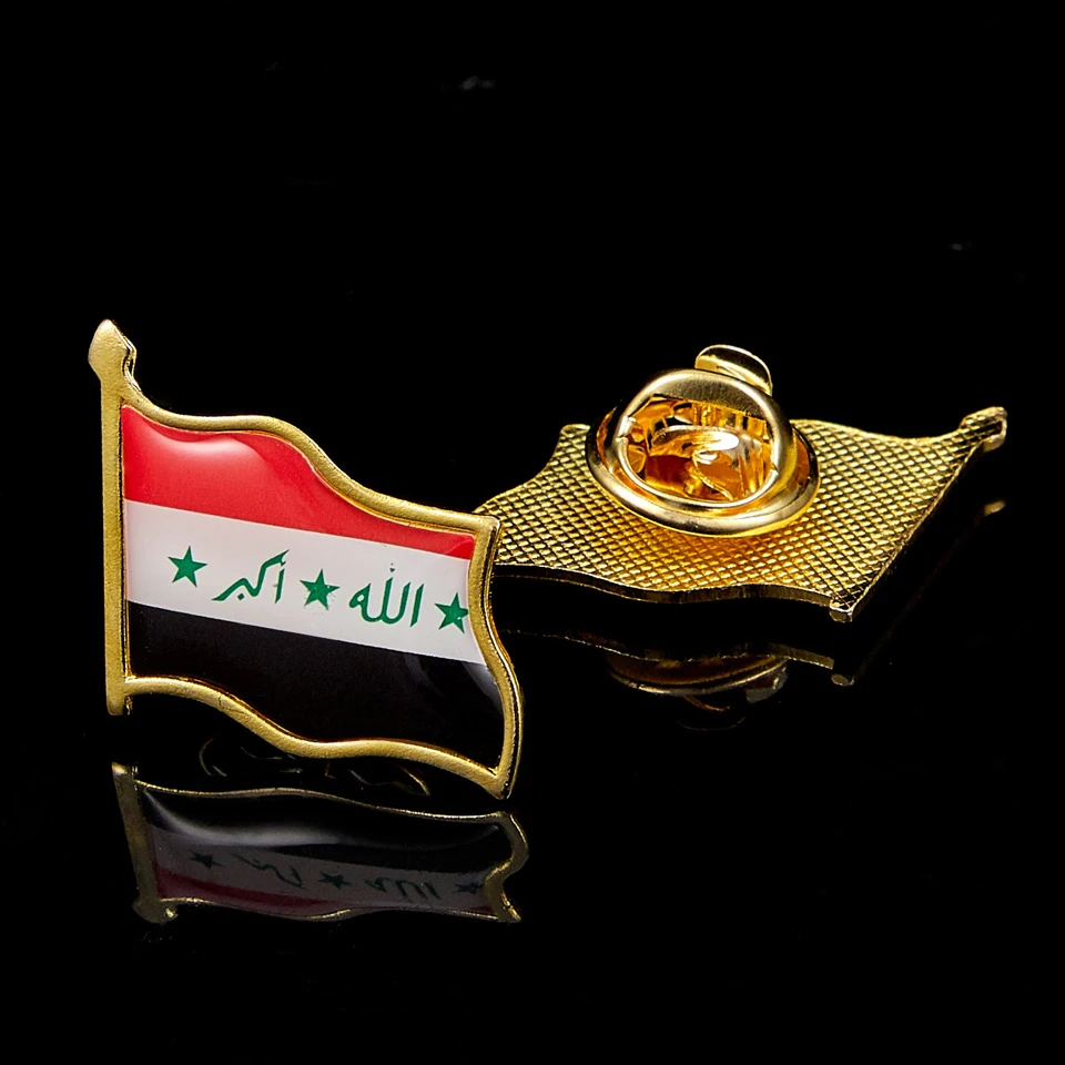 Ираком патриотизм Позолоченные развевающиеся красочные Национальный флаг отворот булавки Безопасности 19x21 мм