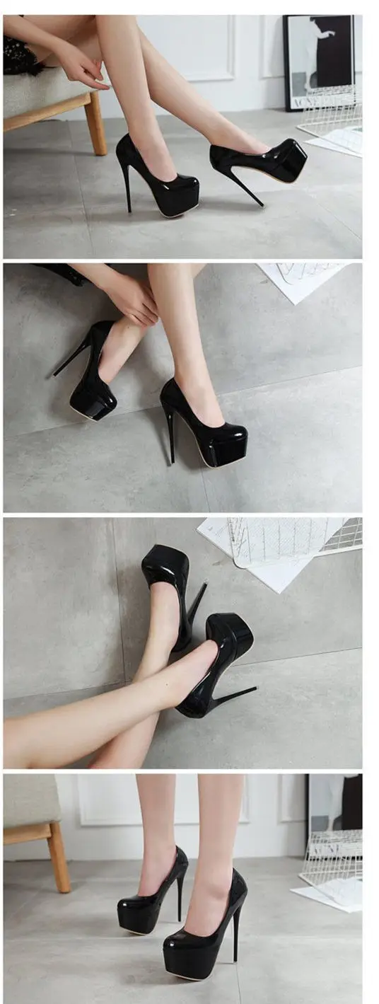 Женские туфли на платформе и высоком каблуке 16 см, большие размеры туфли на высоком каблуке женские туфли-лодочки, новые красные и черные туфли-лодочки с круглым носком