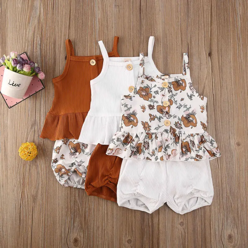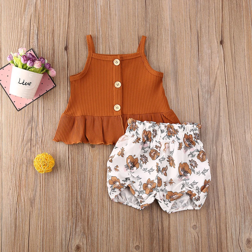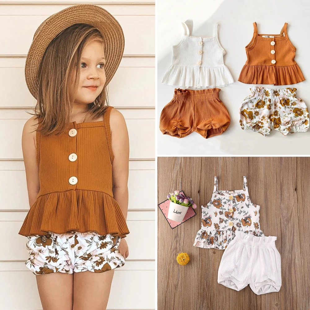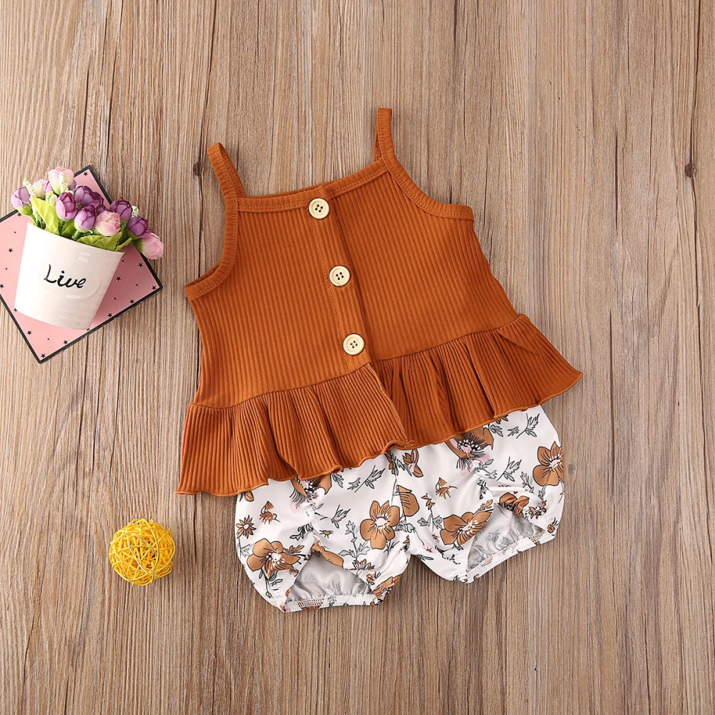 Focusnorm От 1 до 5 лет 3 стиля 2 шт. Одежда для девочек детские ремешки для маленьких девочек топы с оборками Цветочные шорты Повседневная одежда костюм от солнца
