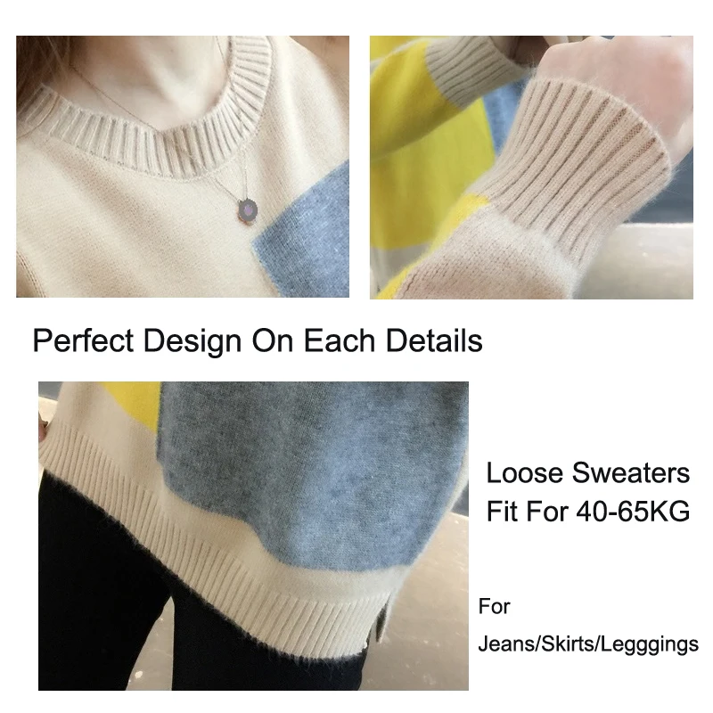 Свободные свитера-стрейч Подходит для 40-65 кг Ширина плеч: 37 см. Обхват груди: 80-100 см Длина: 58 см Рукав: 56 см