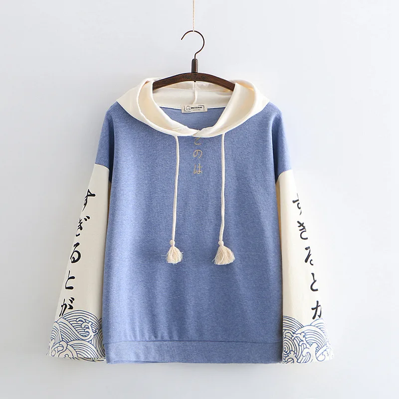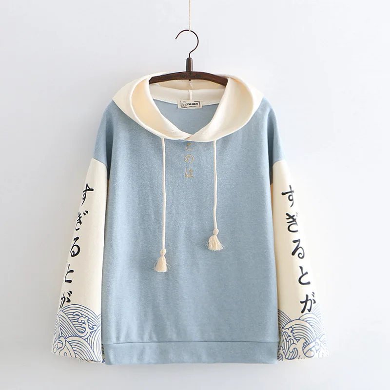 Женский пуловер YUPINCIAGA, корейский стиль, Свободный пуловер с длинными рукавами-реглан и принтом, милые толстовки с капюшоном