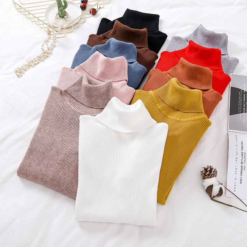 Женский трикотажный свитер в полоску, повседневный мягкий джемпер с высоким воротником, облегающие эластичные пуловеры для девушек, одежда для весны 2022