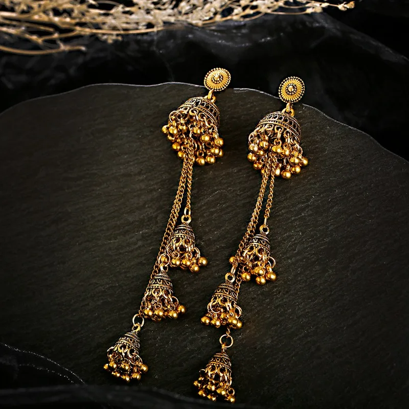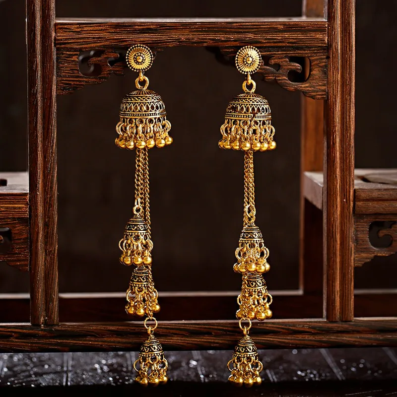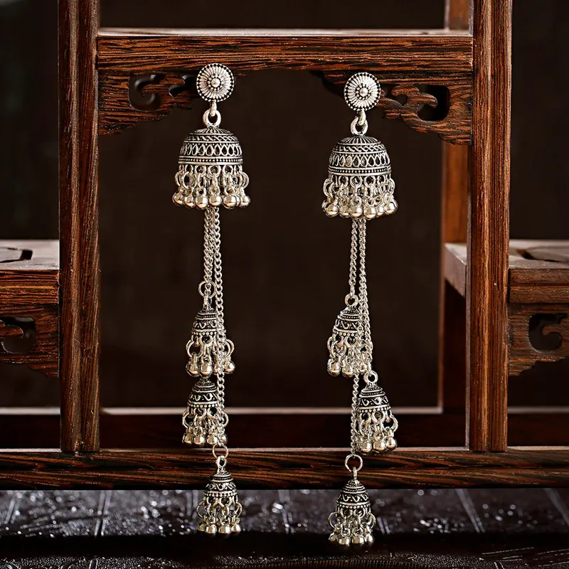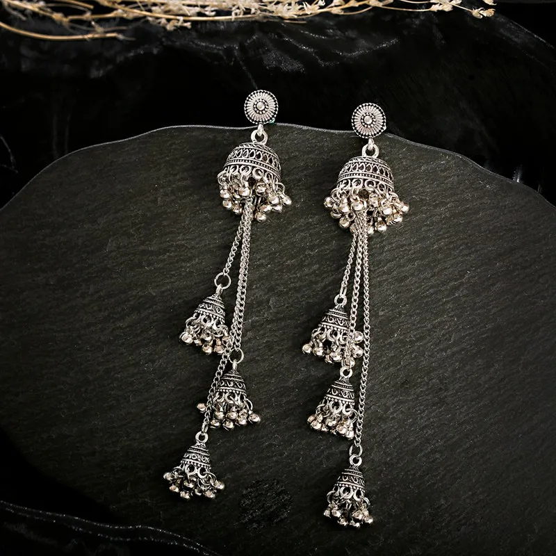Ретро болливудские оксидированные женские индийские серьги Jhumka женские 2020 этнические золотистые Серебристые Длинные висячие серьги с подвесками в виде афганского колокольчика