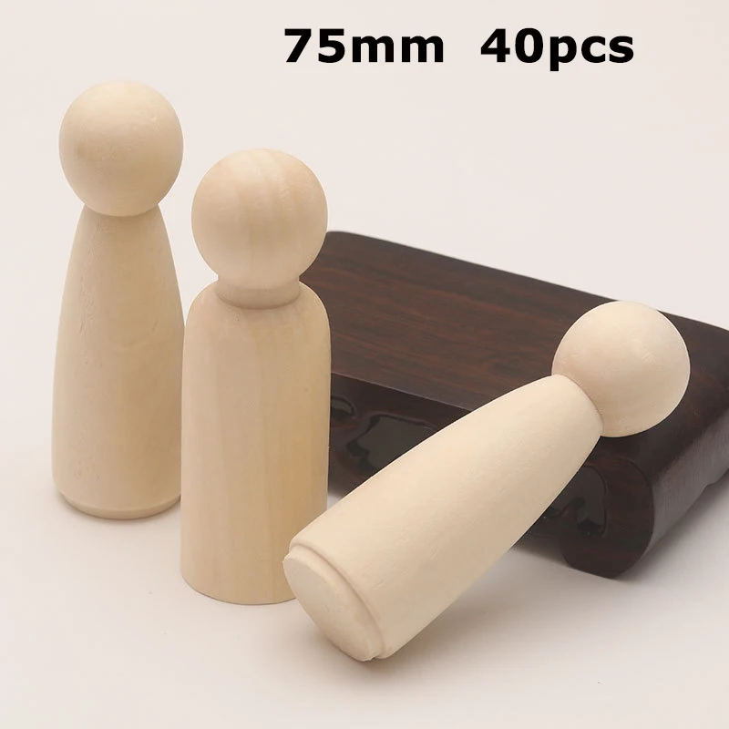 Деревянные колышки для кукол, 75 мм, 40 шт., деревянные куклы сделай сам, домашние фигурки ручной работы, декор для детской комнаты, незаконченные деревянные пустые колышки для кукол