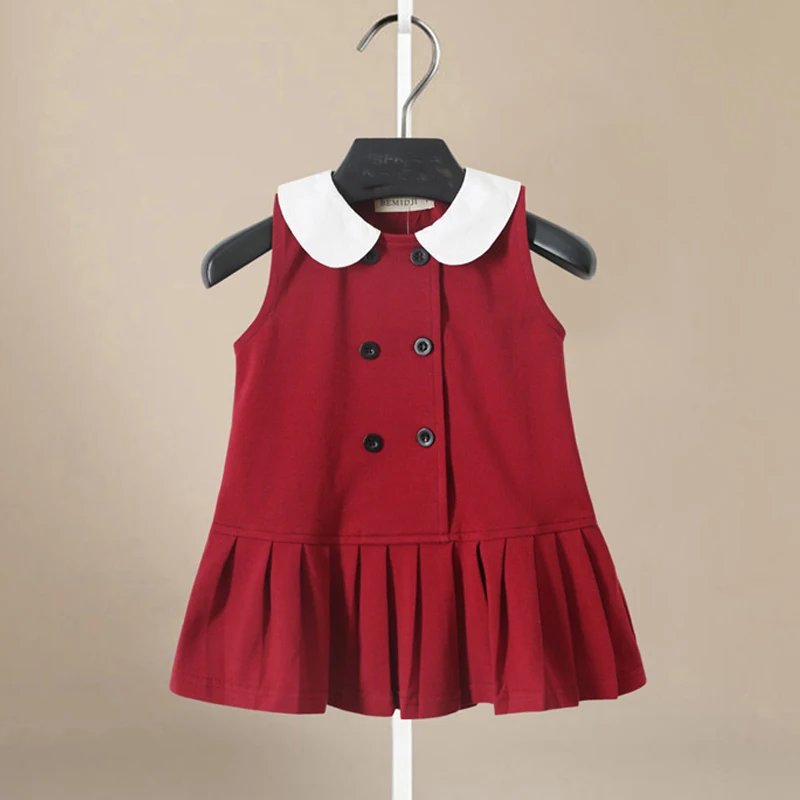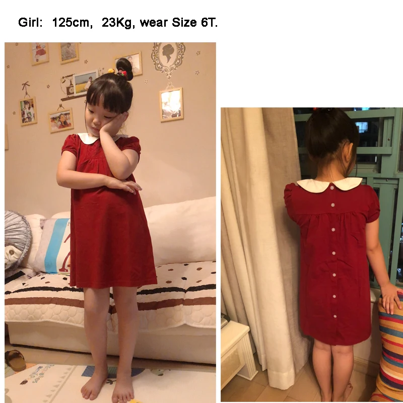 Летнее платье для маленьких девочек милые хлопковые платья с воротником пертер Пэн повседневные топы для малышей, вечерние платья принцессы для детей 1, 2, 3, 4, 5, 6 лет