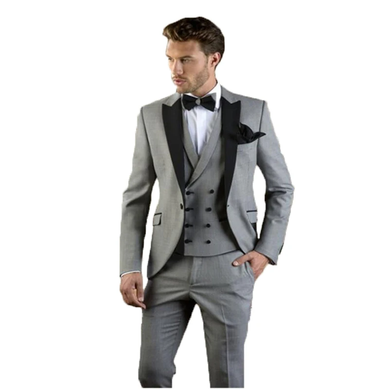Свадебные костюмы серого цвета для мужчин, смокинги для жениха, кос...