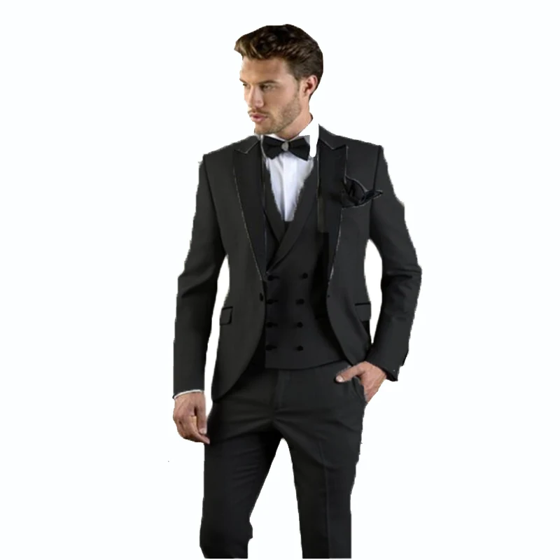 Свадебные смокинги для жениха, мужские черные деловые костюмы из тр...