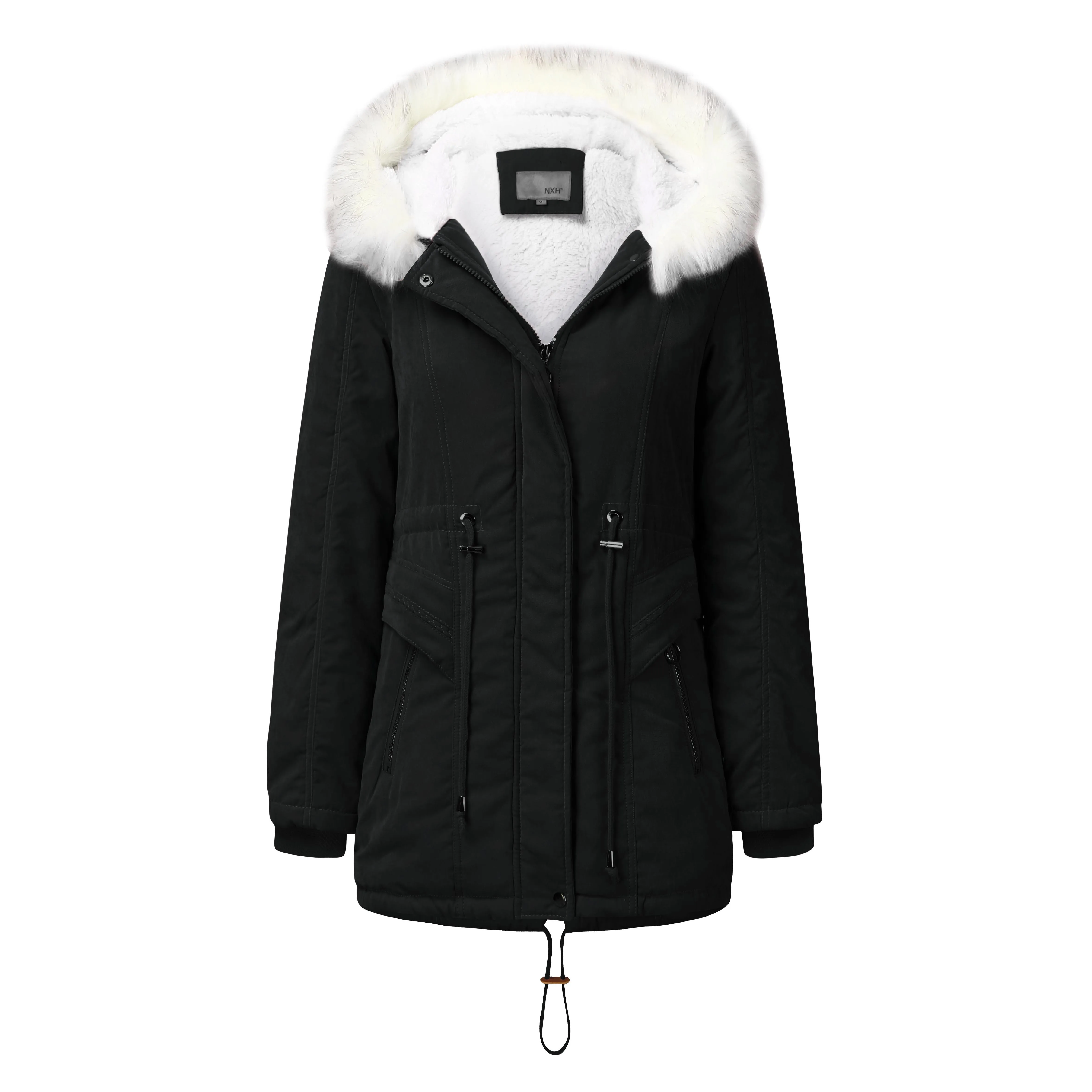 Женская длинная парка с капюшоном и меховым воротником, размеры L4XL