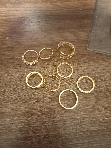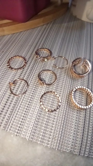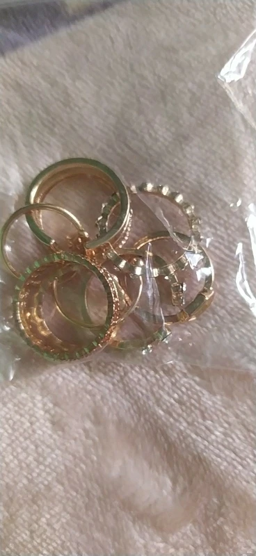 кольца, супер, товар прибыл быстро, советую всем, только вот спустя какое-то время остаётся след ( зелёный, синий) от кольца на пальце, так как не настоящее золото, но думаю не страшно