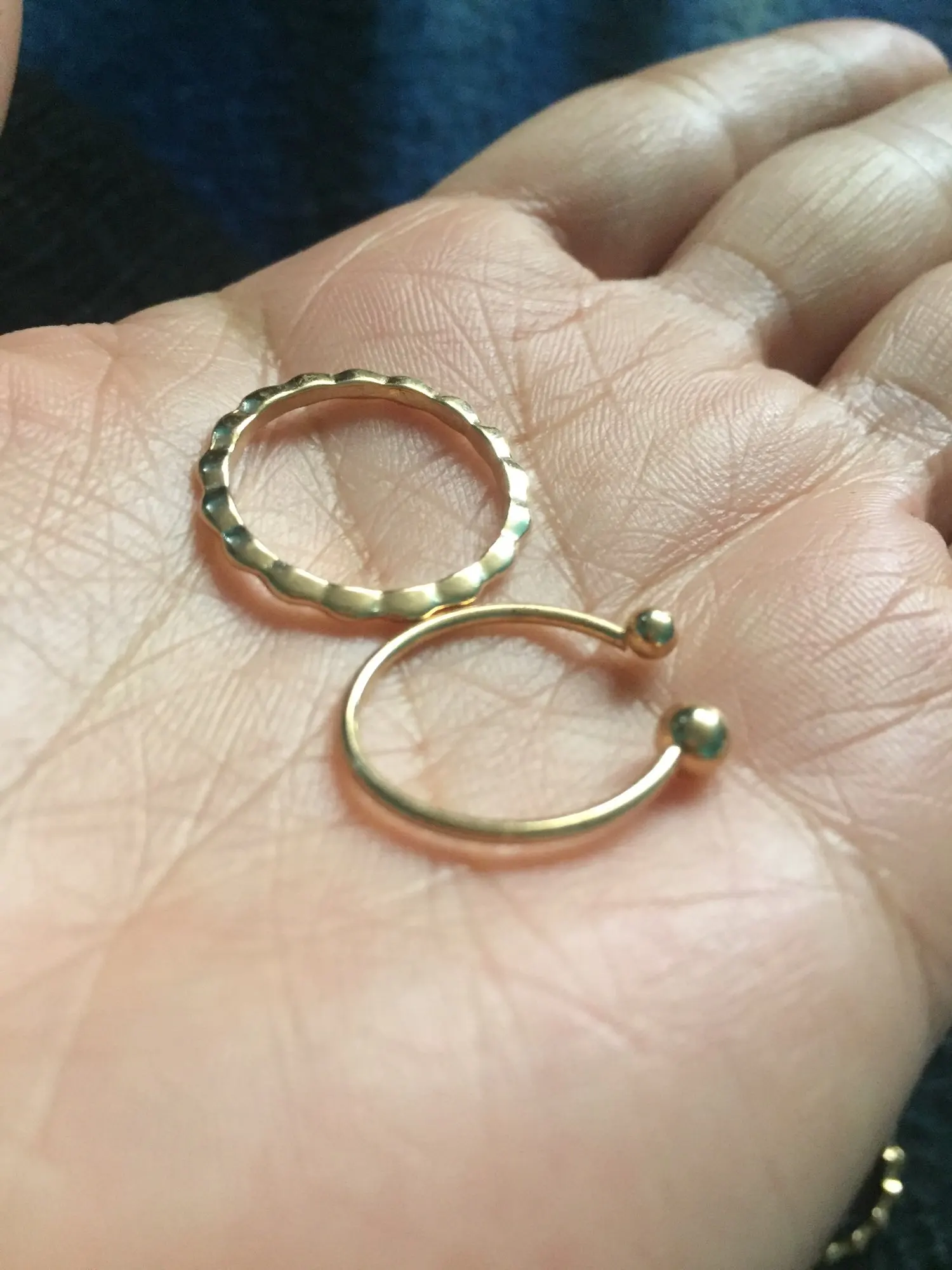Прикольные миленькие колечки, от настоящего золота практически не отличитьдоставка через сбер логистику в красноярский край чуть больше двух недель, что очень порадовало, рекомендую товар и продавца