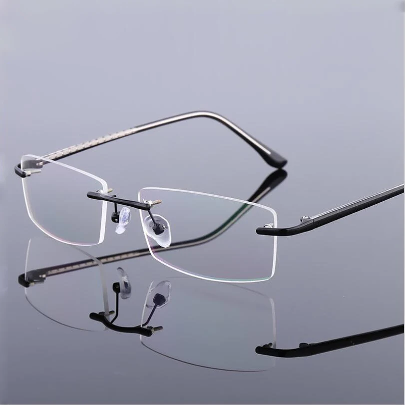 Мужские деловые алмазные обрезные линзы без оправы из чистого тита...