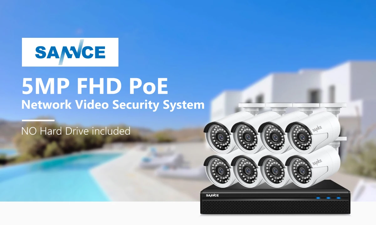 Система видеонаблюдения SANNCE, 8 каналов, 5 Мп, сетевой видеорегистратор, POE, 5 МП, IP66, наружный видеорегистратор IR-CUT, Canera
