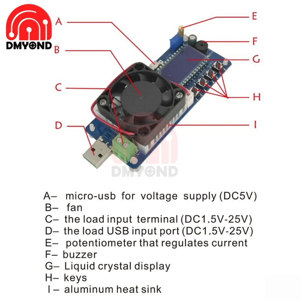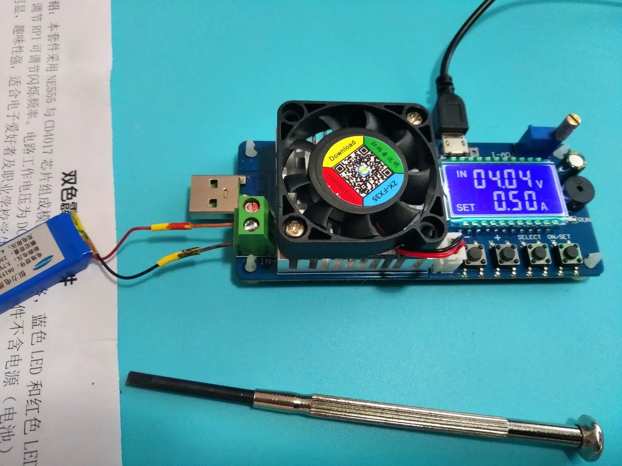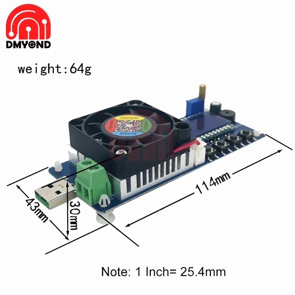 Нагрузка пришла в коробке, увы был немного погнут разъем, исправилось пинцетом. Показания вольтажа и тока довольно точные, проверял на лабораторном БП, на клеммах напряжение соответствовало отображаемому (погрешность в одну сотую не критична), из-за потерь на проводах показания немного отличались в меньшую сторону. Вентилятор запитывается от основного питания, а не от тестируемого источника. Обдув включается по температуре, имеет некоторый гистерезис. В приборе настраиваются пороги отключения устройства, если напряжение падает ниже заданного, нагрузка отключается и пищит буззером. Показывает ампер-часы, ватты и прочее, жаль, что не умеет сохранять подробную во времени аналитику. Можно тестировать не только 5-и вольтовые усб устройства, но и любые другие источники питания до 25 вольт. Для устройства нужен отдельный источник питания, можно как от микро усб запитать, так и подпаять провода.