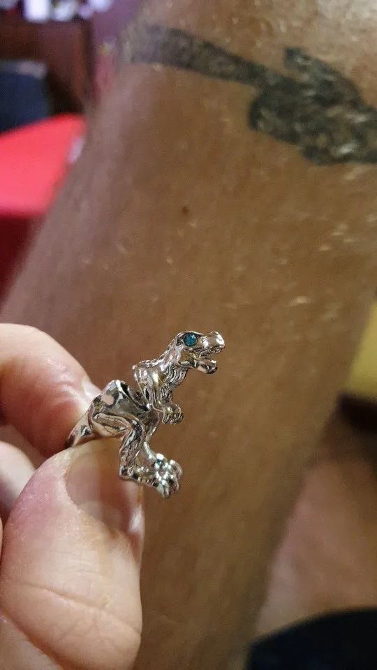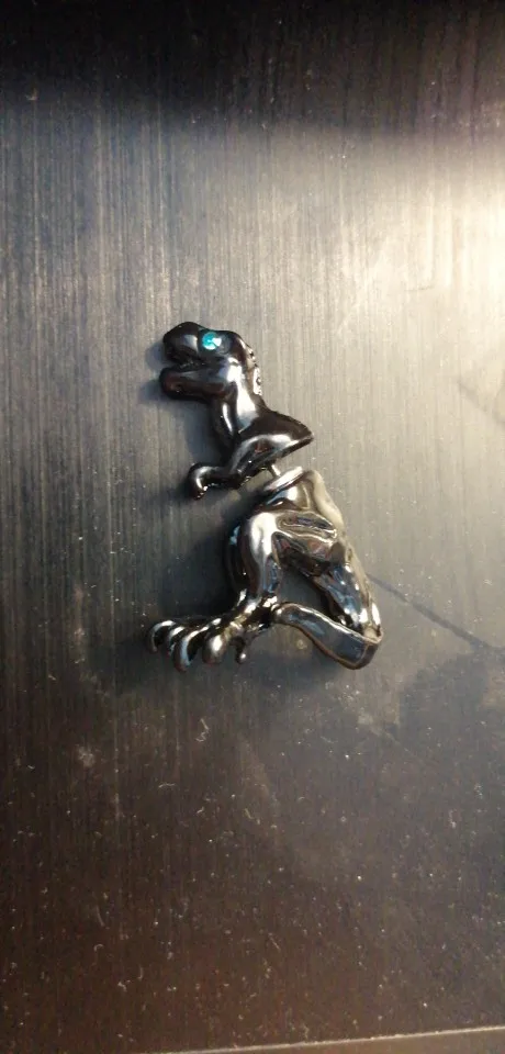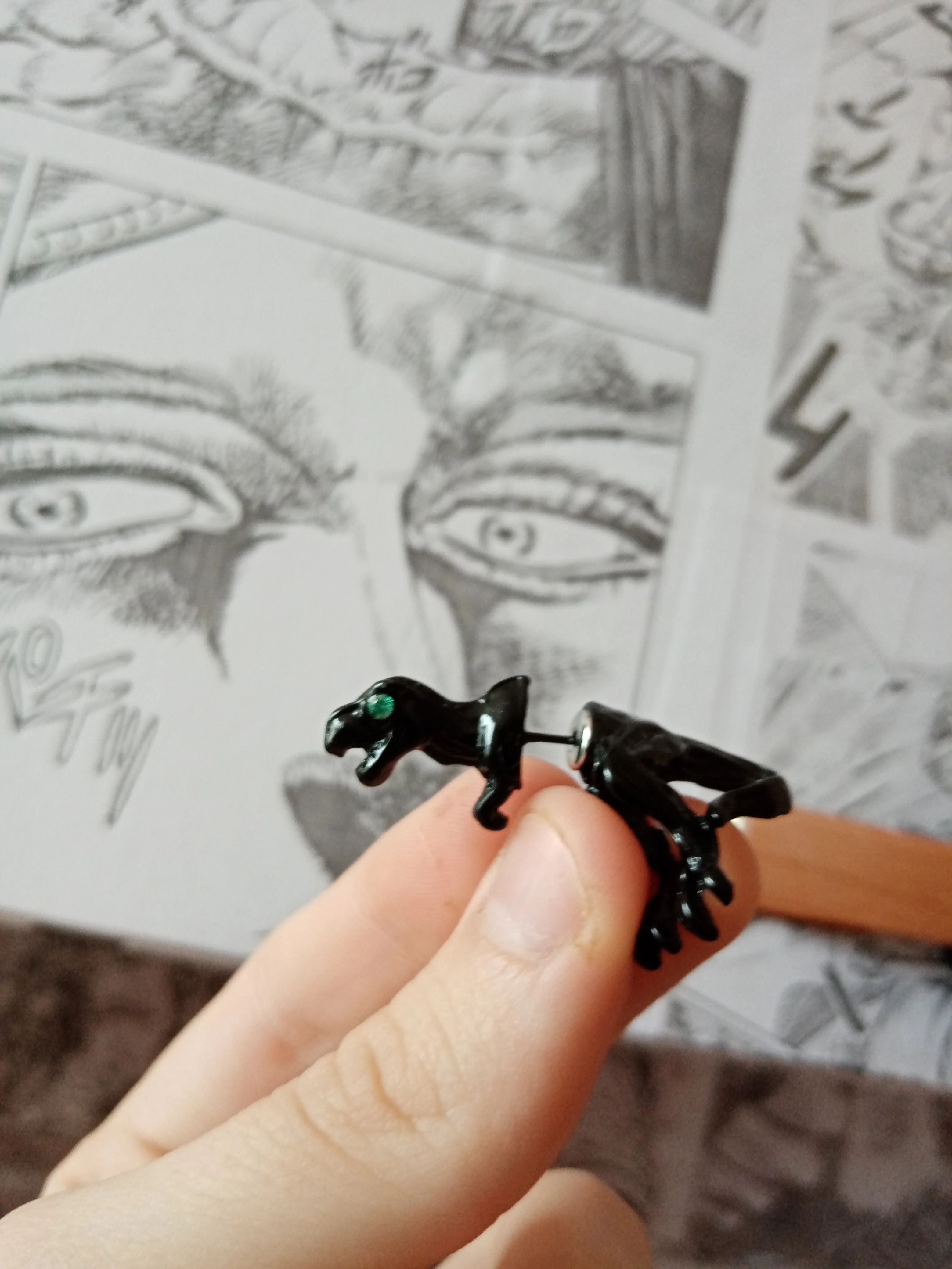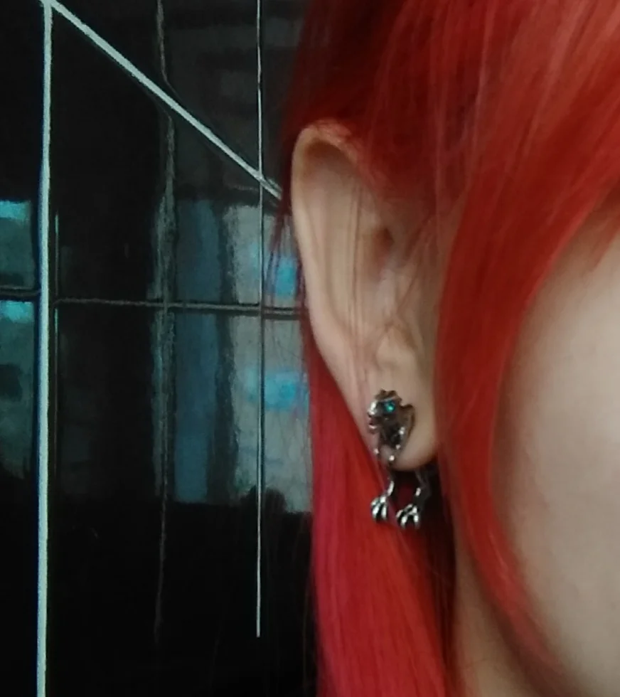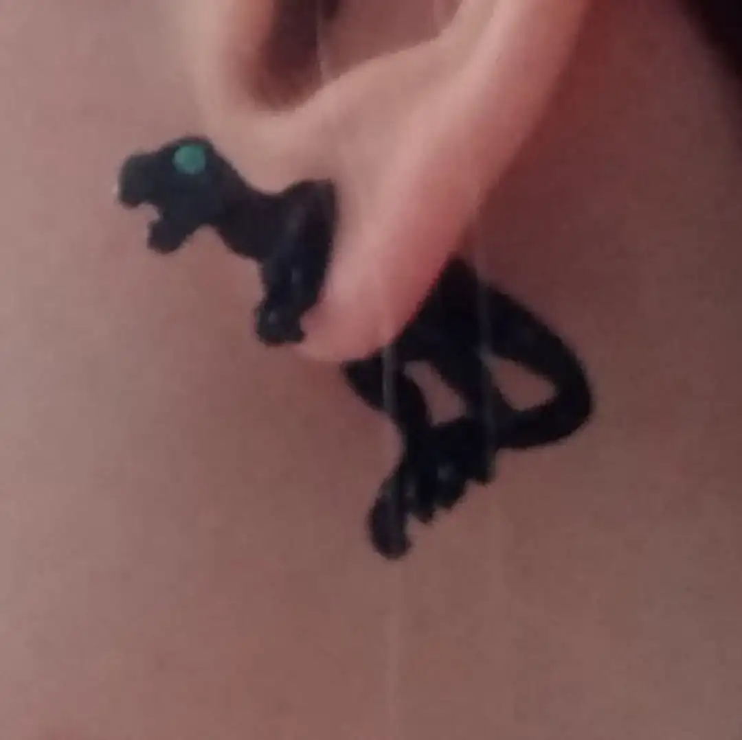 Подарили такого динозавра и я решила для комплекта заказать ещё одного. Один на одном ухе смотрится не очень, а когда два, то образ уравновешивается и это выглядит прикольно