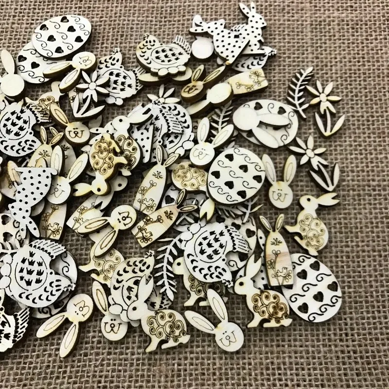 50 шт. пасхальные яйца кролика, деревянное ремесло, пасхальные украшения для домашвечерние, деревянные чипсы сделай сам, подвесные украшения, натуральная ручная работа
