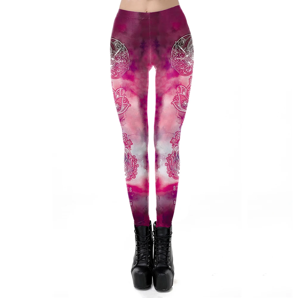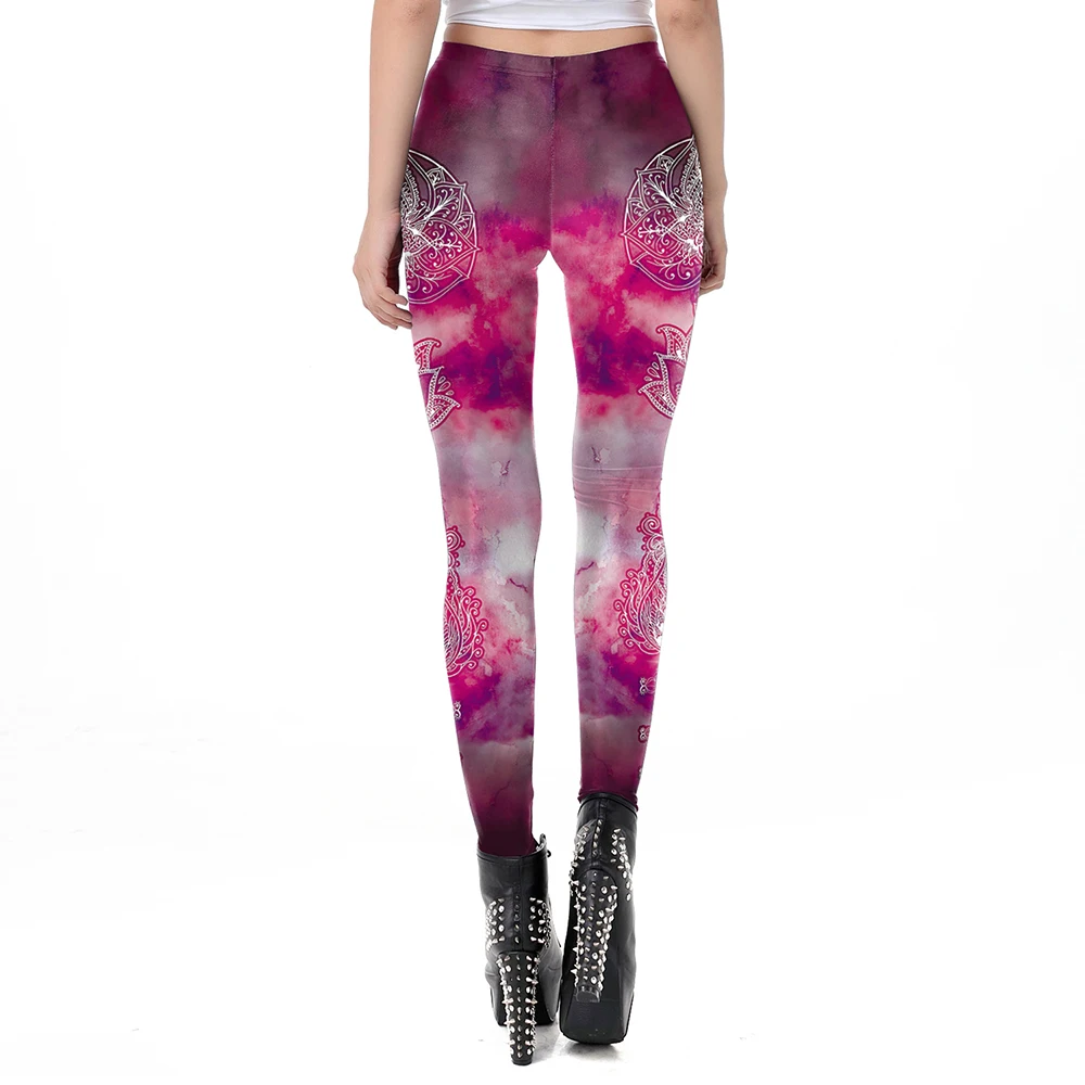 Женские розовые леггинсы для тренировок FCCEXIO, серия мандаля, леггинсы для фитнеса, брюки с круглым цветком Омбре В Индийском стиле со средней талией