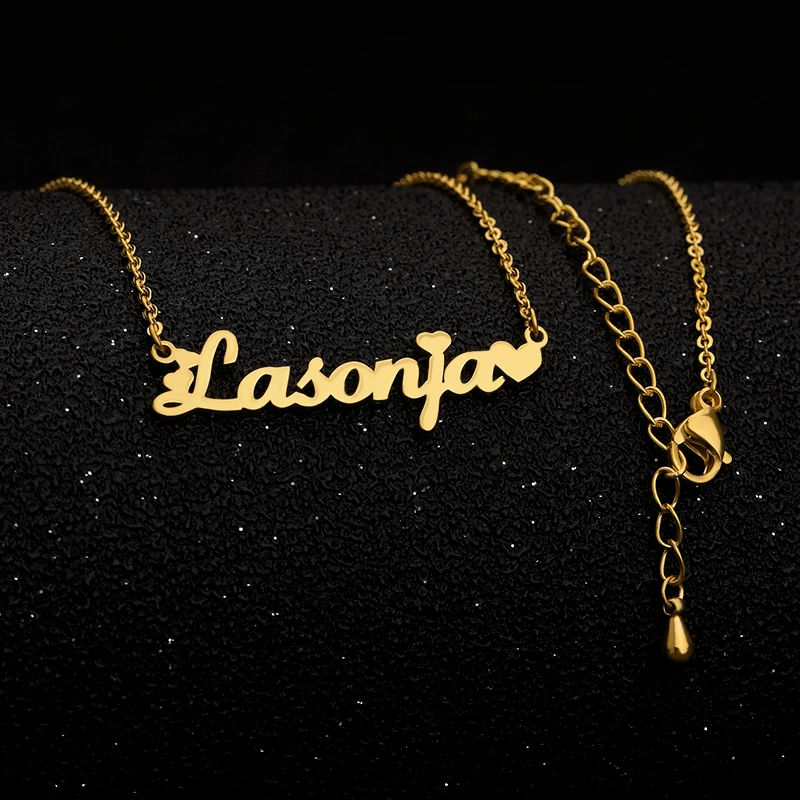 Ожерелья для женщин, чокер из нержавеющей стали с именем и золотым сердцем