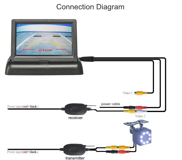 Устраняет необходимость запуска кабеля длиной транспортного средства, просто подключите передатчик в конце камеры и приемник в конце монитора.