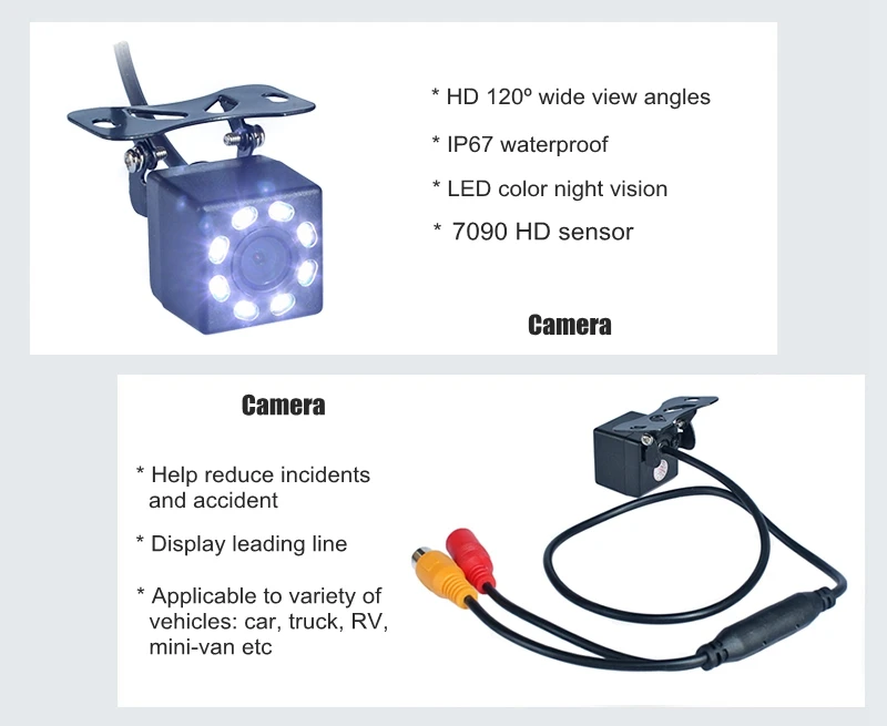 Как только ваш автомобиль оснащен этой компактной и модной системой обратного видео, мир за вашим автомобилем больше не будет беспокоить вас! Более того, вы можете наслаждаться видео, которое приходит с DVD и т. Д. Благодаря 2 видео входов.