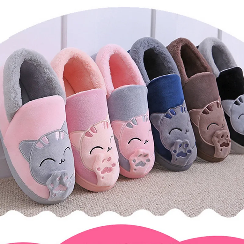 MoneRffiженские зимние тапочки; домашние тапочки с рисунком кота; нескользящая теплая Домашняя обувь для спальни; тапочки; chaussures femme