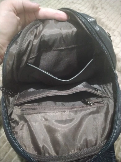 Классный рюкзак, думала придет помятый, но нет. Все целое, пошив хороший, косяков не нашла. Единственный минус мелкие карманы внутри, и сзади у спины. У спины носила паспорт, кошелек, ключи, в этот влезли только ключи. Внутри тоже кармашки мелкие.