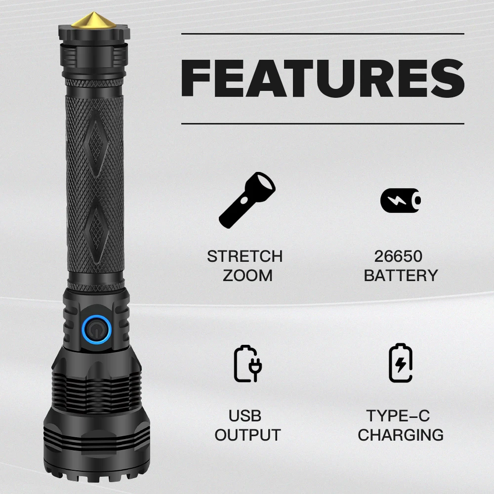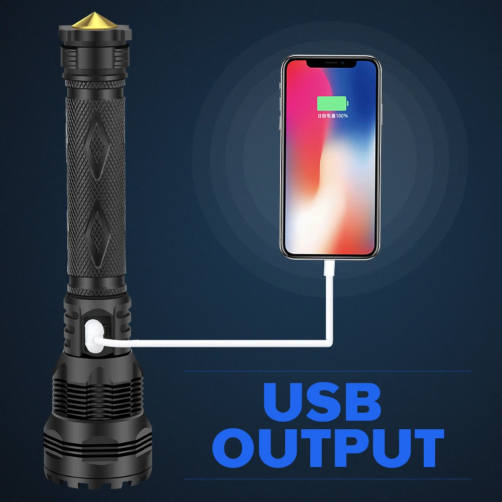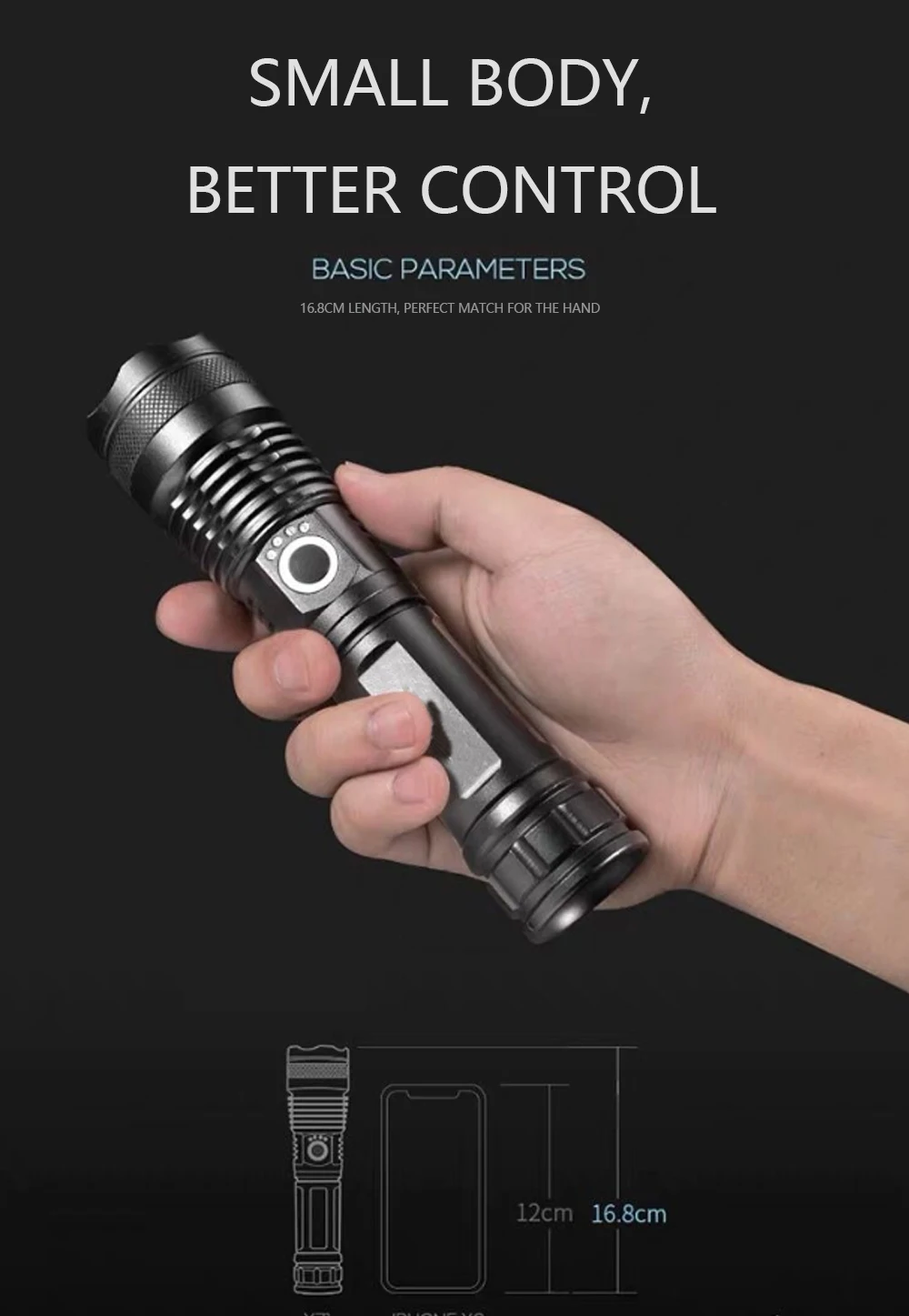 Самый мощный светодиодный фонарик XHP70, 26650 лм, перезаряжаемый от USB Тактический зум, 3 режима освещения, фонарик с батареей для кемпинга