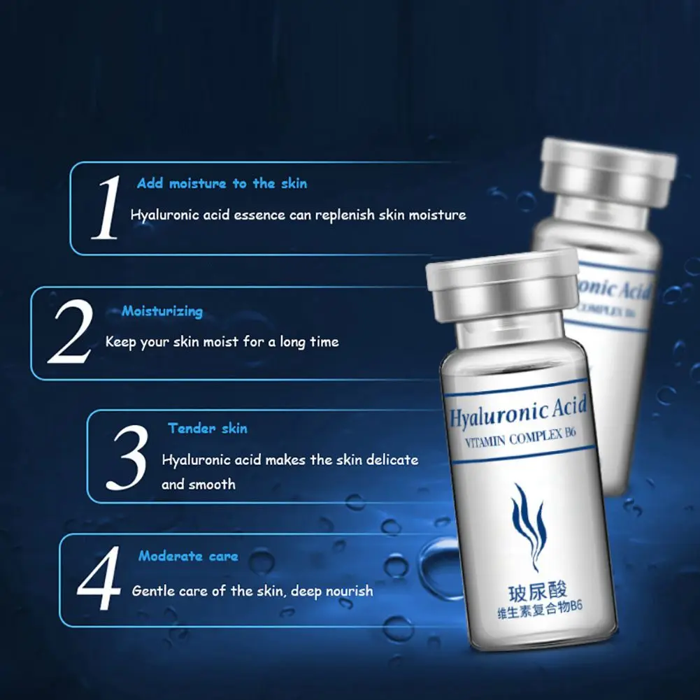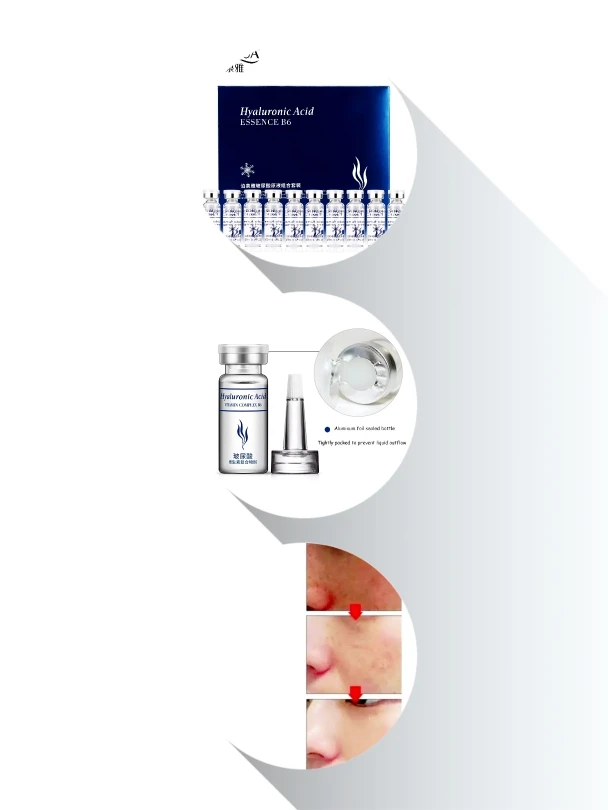 Масло гиалуроновой кислоты витаминный комплекс B6-Moisturizer для сухой кожи Гиалуроновая кислота-bioaqua-10 единиц Гиалуроновая кислота является естественным образом вырабатываемой активной кожей тела, она известна своей высокой гидратационной силой и антистигнальным действием, которое способно уменьшить и избежать морщин и мимических линий. Гиалуроновая кислота действует в сочетании с коллагеновыми волокнами, обеспечивая эластичность и упругость кожи. Самая большая характеристика кислоты Гиалуроновая-это ваша гидратационная сила. Он обладает высокой способностью удерживать воду, примерно в тысячу раз превышающей его вес! Сохраняя кожу увлажненной, она здоровая, с vim и сияющей. С годами производство гиалуроновой кислоты нашим организмом уменьшается примерно на 1/3, оставляя кожу обезвоженной и без плотности. Восполнение вещества с помощью дермокосметики возвращает эластичность, увлажнение и восстанавливает здоровый вид кожи.
