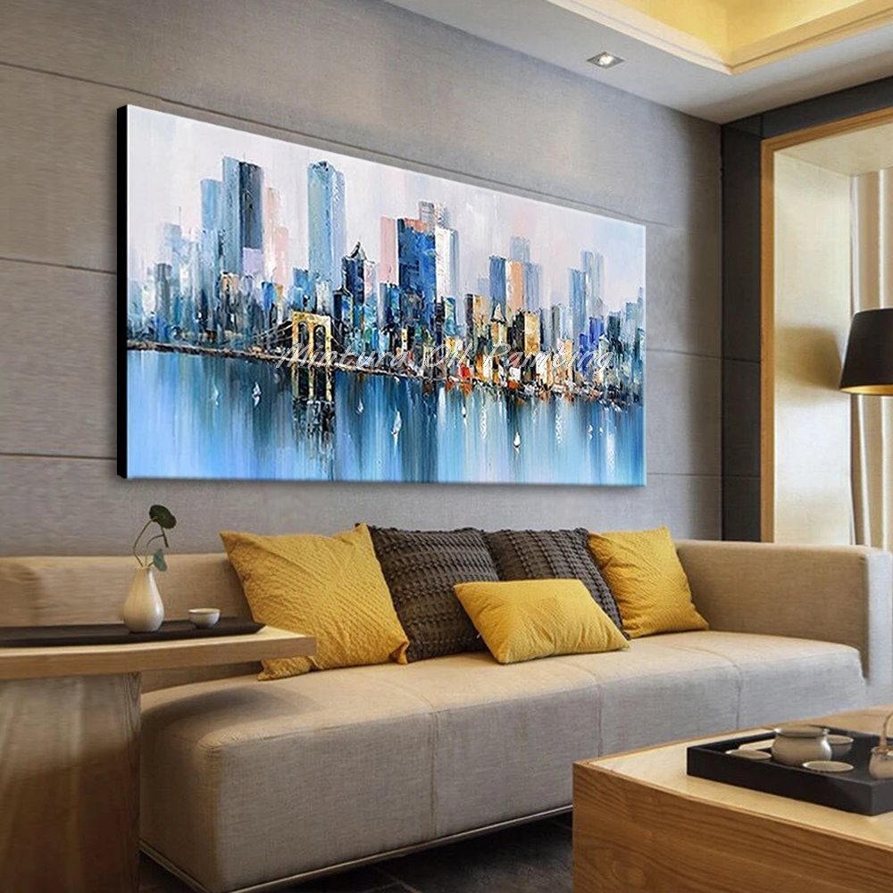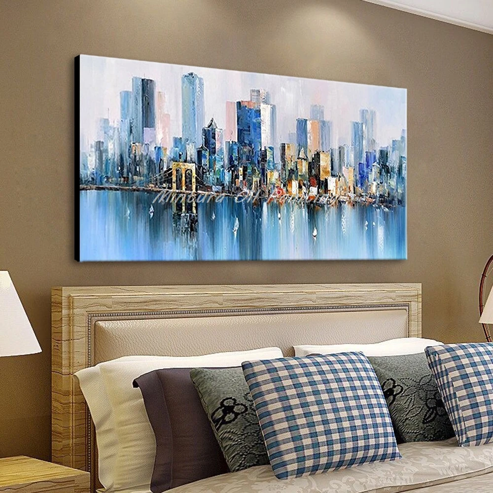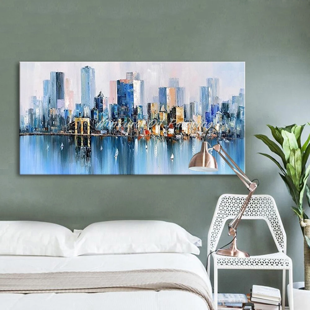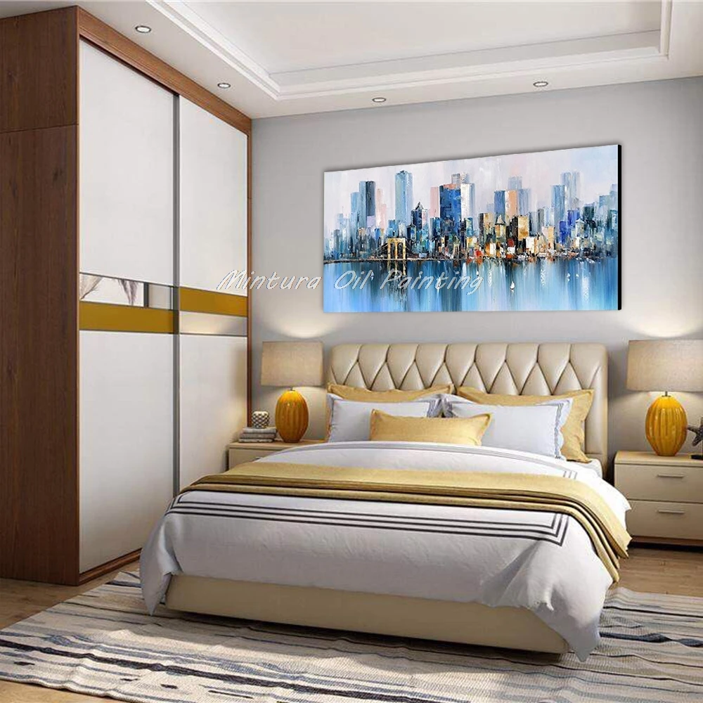 Картина на стену Mintura для гостиной, Масляные картины, ручная роспись, акриловый холст, синие городские кластеры, настенная живопись, домашний декор, без рамки