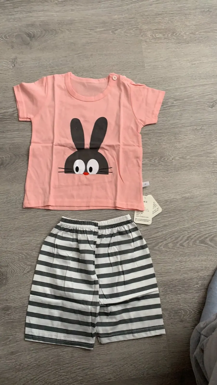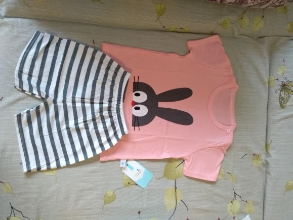 Хороший костюмчик, шорты более тонкие, чем выглядят на картинке. Очень долго шла посылка: заказ был оплачен 26.05, получен 01.08. Размер 24м подошёл с запасом ребенку с размером одежды 86. С продавцом не общалась.