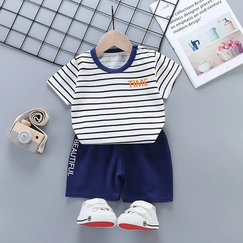 Комплект летней одежды для маленьких мальчиков и девочек, комплект одежды для младенцев, Детский костюм с коротким рукавом + шорты, домашняя одежда для малышей, Детские наряды