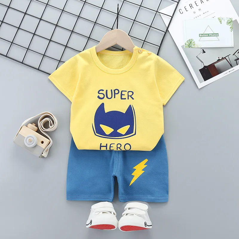 Новая летняя детская одежда с короткими рукавами для мальчиков и девочек, хлопковый комплект нижнего белья Детские комплекты одежды из двух предметов