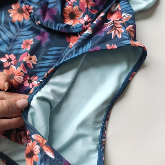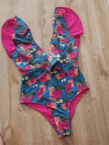 Красивый купальник с воналами❤️❤️❤️ На свои параметры 84-63-83, рост 167 см я заказала размер S, сел купальник по размеру. Лямки никак не регулируется, они украшены воланами, на лифе имеется небольшой пуш-ап, (при желании можно его убрать). Эта модель купальника очень красиво моделируют фигуру скрывая все её недостатки. Идеальный купальник для меня, потому что он такой яркий, летний, делает фигуру эффектной, убирая все лишнее. Внутренняя сторона выполнена из яркой ткани красного цвета❤️ На талии пришит длинный пояс красного цвета, благодаря которой талия визуально кажется тоньше На ластовице имеется гигиеническая бумажная наклейка. Принт в виде ярких цветов напечатан очень красиво, при стирке и на солнце цвет не выцветает. Качество пошива отличное, швы все ровные, без пропусков, зазоров и торчащих ниток. Безумно довольна приобретением!