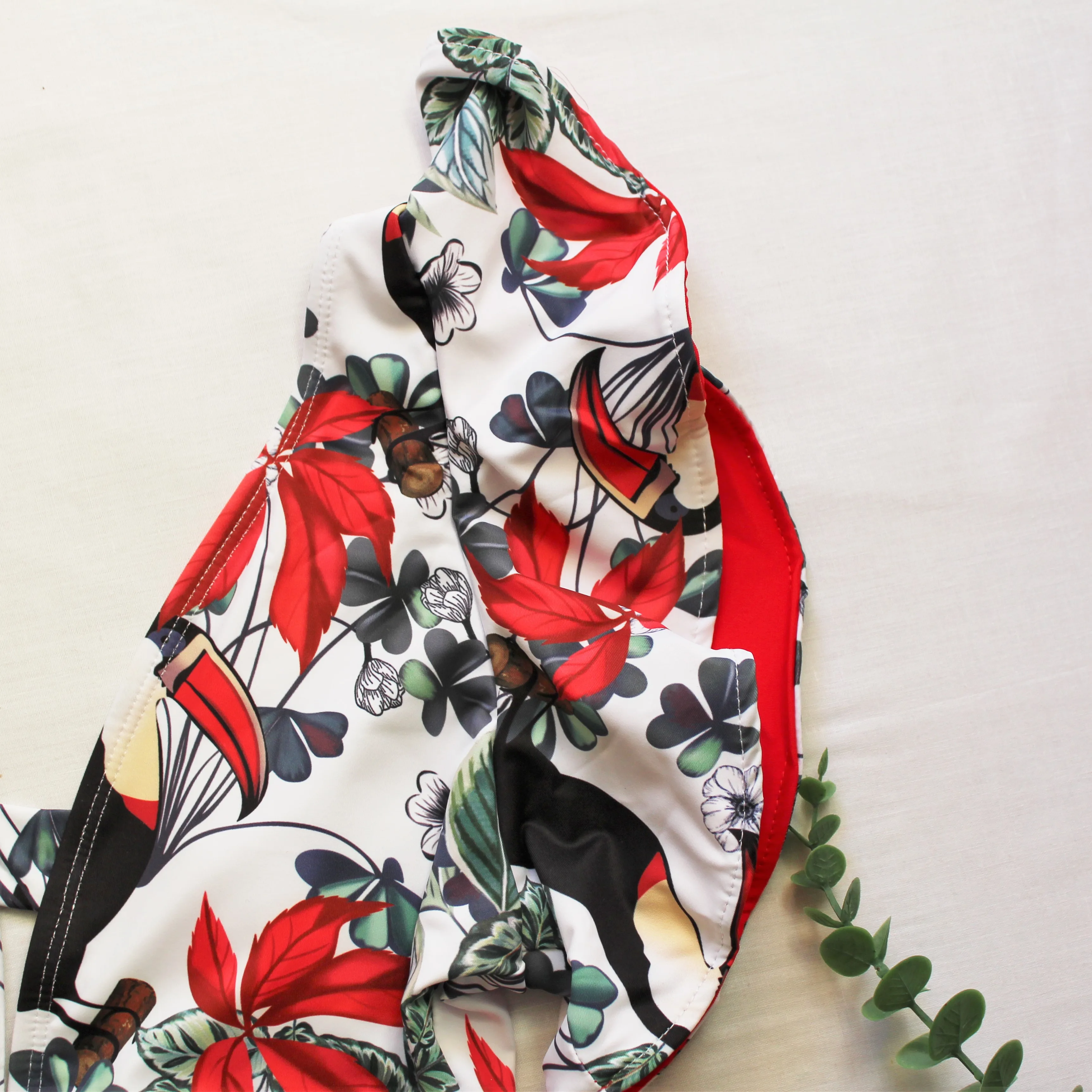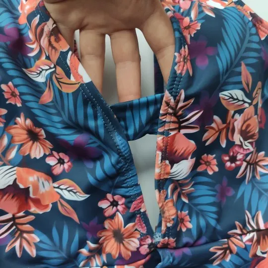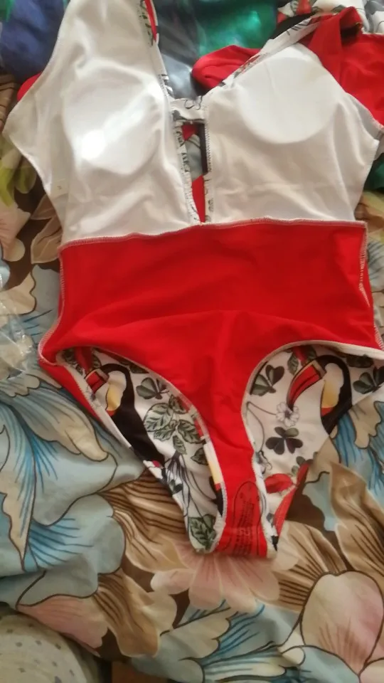 Размер Xl на русский 50-52 сел отлично, не полнит. Качество ткани хорошее, плотное, цвета яркие. Только на моем купальнике туканы на груди расположились Спасибо продавцу за быструю доставку и отличную вещь!