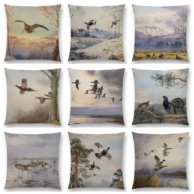Птица рэпторы Орел Сокол вырезанное крыло летающее небо кормовое речное поле мигрирует зима картина маслом красочная Наволочка Чехол для подушки
