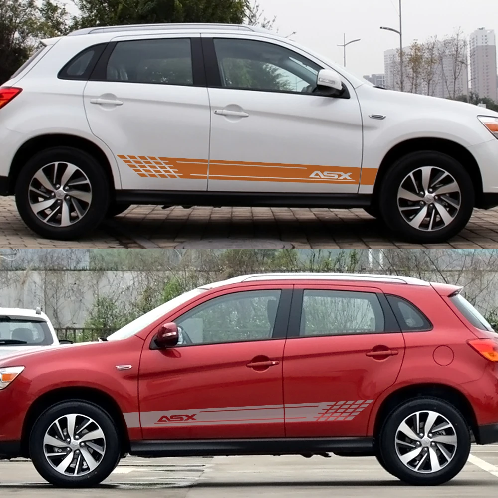 2 шт. наклейки для автомобильных боковых юбок Авто Виниловая пленка Длинная сторона для Mitsubishi ASX наклейки украшения DIY Стайлинг тюнинг автомобильные аксессуары