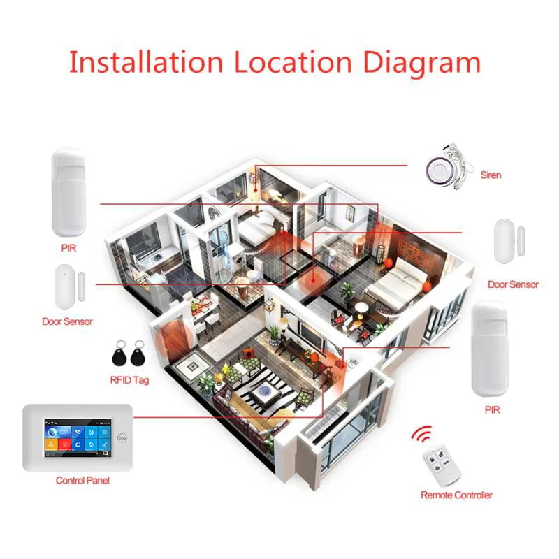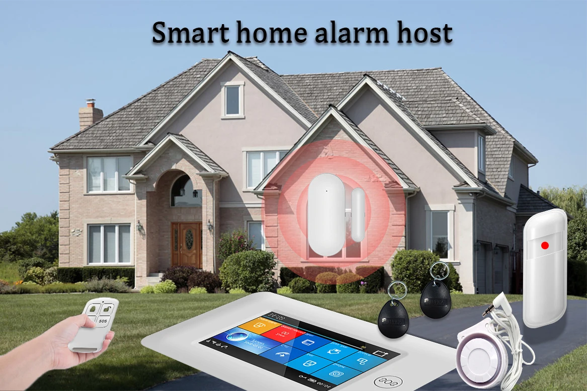 Умная домашняя система охранной сигнализации Беспроводной Wi-Fi 433 МГц Gsm сигнализация 4,3 дюймов полный сенсорный Цвет Экран с SOS сирена детектор дыма