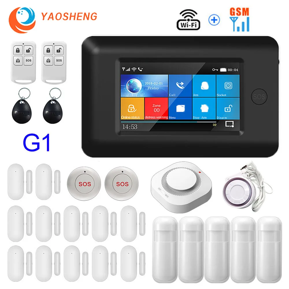 Умная Беспроводная Gsm-сигнализация, 433 МГц, 4,3 дюйма, сенсорный цветной экран, с SOS-сиреной, детектор дыма
