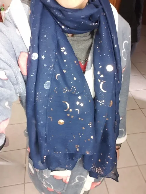 Женский тонкий шарф с принтом в виде звезды, Луны, 70*180 см