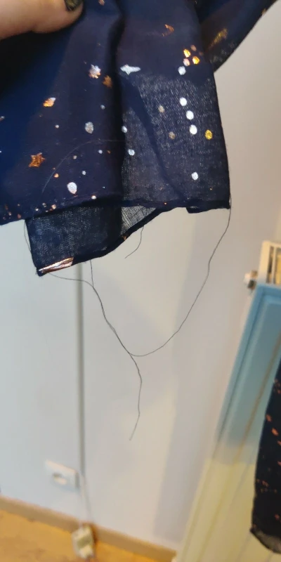 Хороший шарф. ткань полупрозрачная, мягкая и приятная на ощупь, золотой принт непрозрачный, с изнанки слегка просвечивает и выглядит серебряным. Ширина чуть меньше заявленной - 65 см. Доставлен за 35 дней, не отслеживался. Упаковка хорошая.