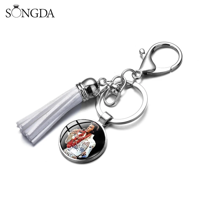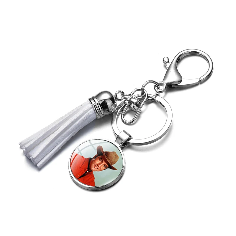 Тип товара: ручной работы стеклянный кабошон с фото PU кожаный брелок с кисточкой