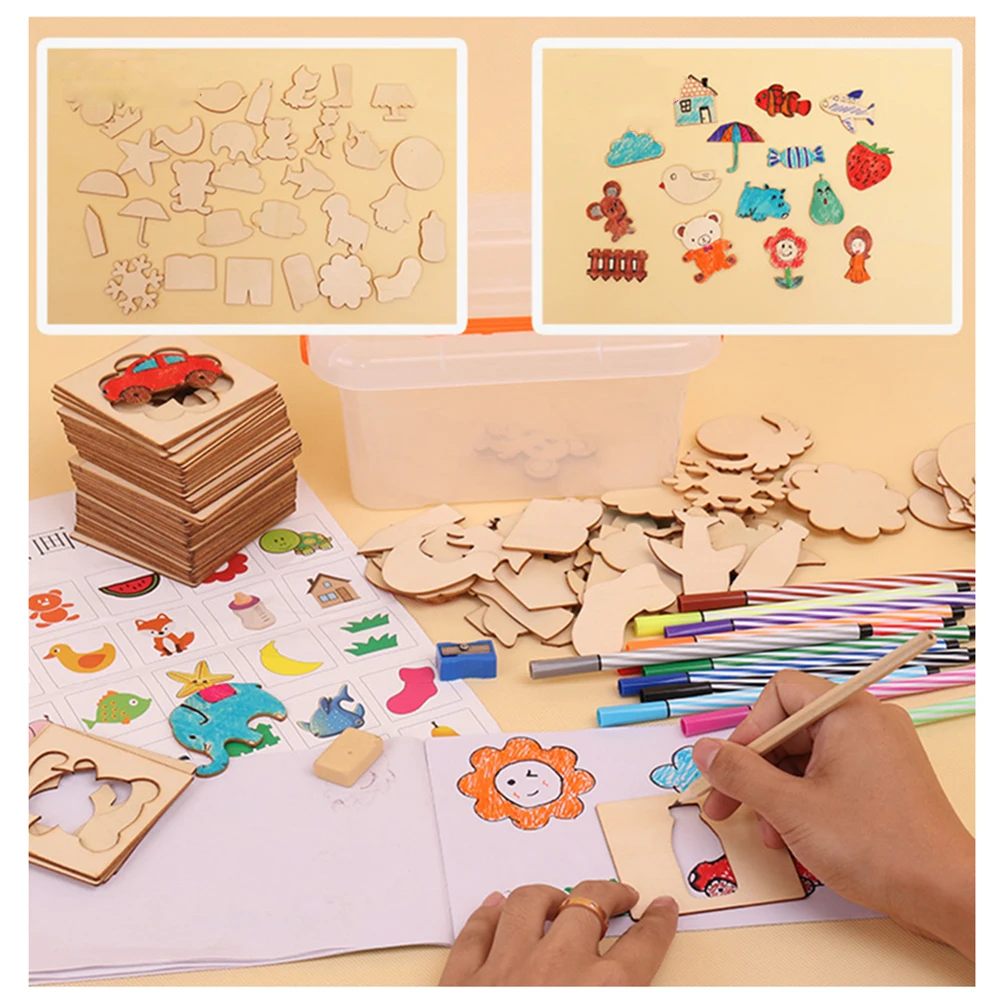 Детские шаблоны для рисования, деревянные граффити, интерактивные развивающие игрушкиХарактеристики:Яркий стиль, легко привлекает внимание детей.Научите детей рисовать и развивать свои интересы.Также могут быть идеальными интерактивными игрушками для родителей и детей.Тип:Доски для рисованияМатериал:ДеревянныйВозраст:2 +Особенности:Красочные интерактивные игрушки, детский подарокРазмер:11 см x 14,5 см x 20 см/4,33 дюйма x 5,71 дюйма x 7,87 дюйма (прибл.)Примечания:Около 50 доск для рисования и 48 наполнителей для граффити, количество будет 3 - 5 шт. более или менее. Надеемся на ваше понимание, спасибо.Из-за разницы в освещении и настройках экрана цвет изделия может немного отличаться от изображения.Возможны незначительные различия в размерах из-за различий в измерениях вручную.Посылка входит:50 x доски для рисования48 x наполнители для граффити12 ручек1 x фотоальбом1 точилка для карандашей1 ластик