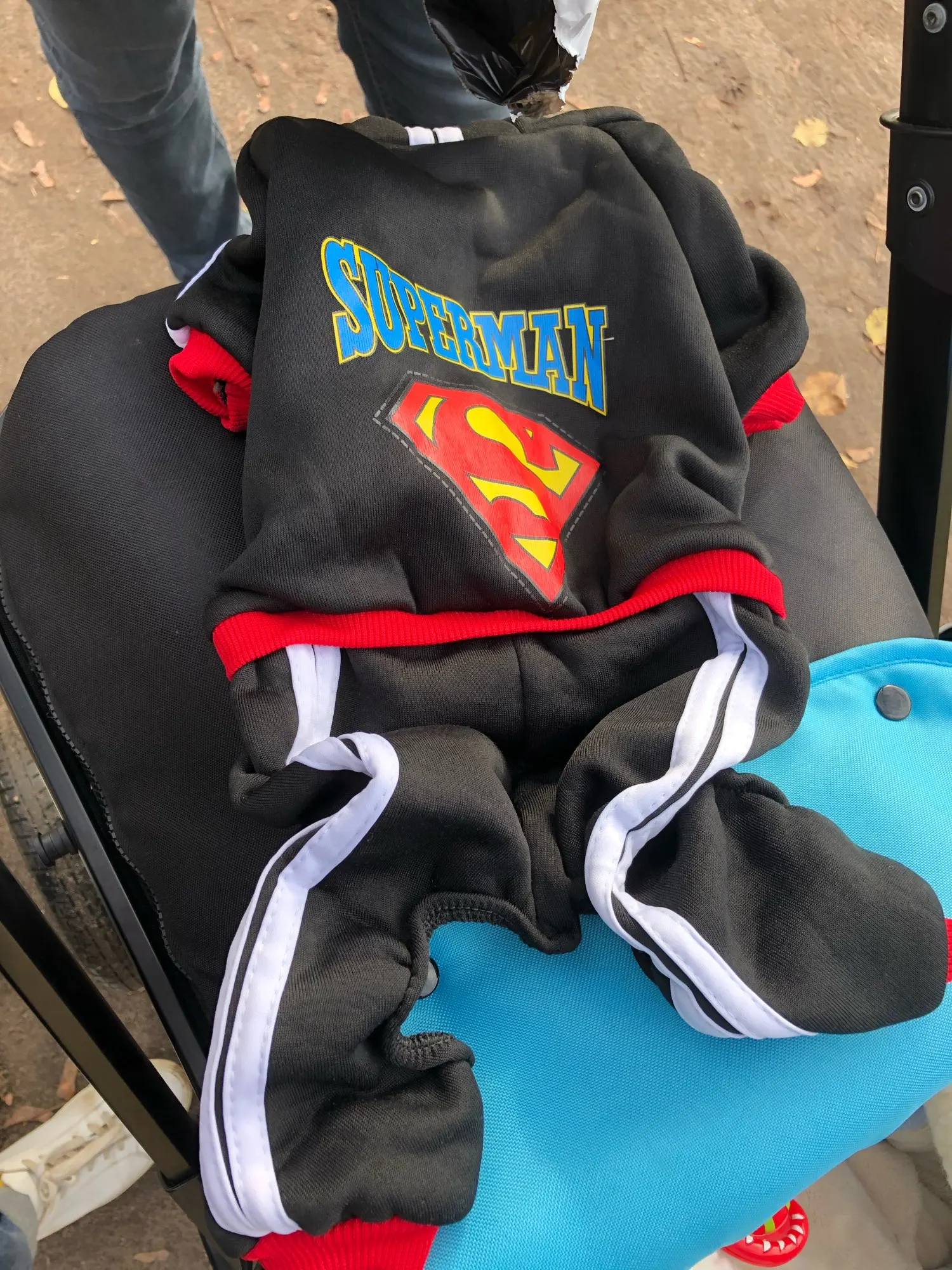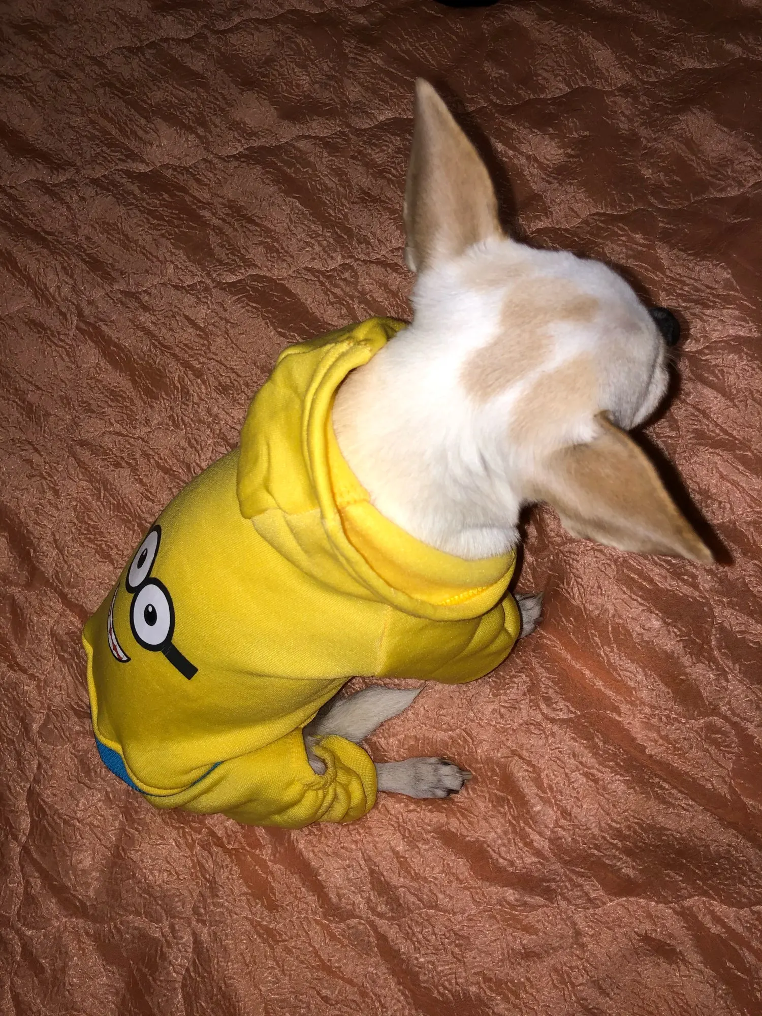 Костюм прикольный. Но размер не соответствует. Собака 1.5 кг. Костюм маленький.