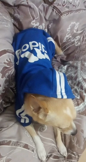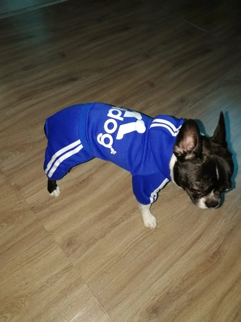 Спасибо. Костюм L подходил для собаки чихуахуа 4 кг. Сшит качественно и синий цвет яркий