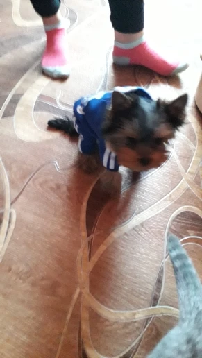как на картинке ,красивый,нитки не торчат. На мини Йорка размер S большой надо было xs заказать.