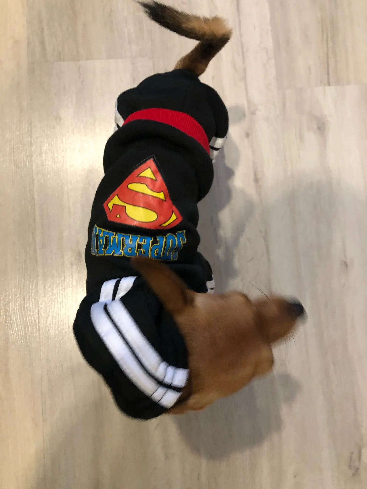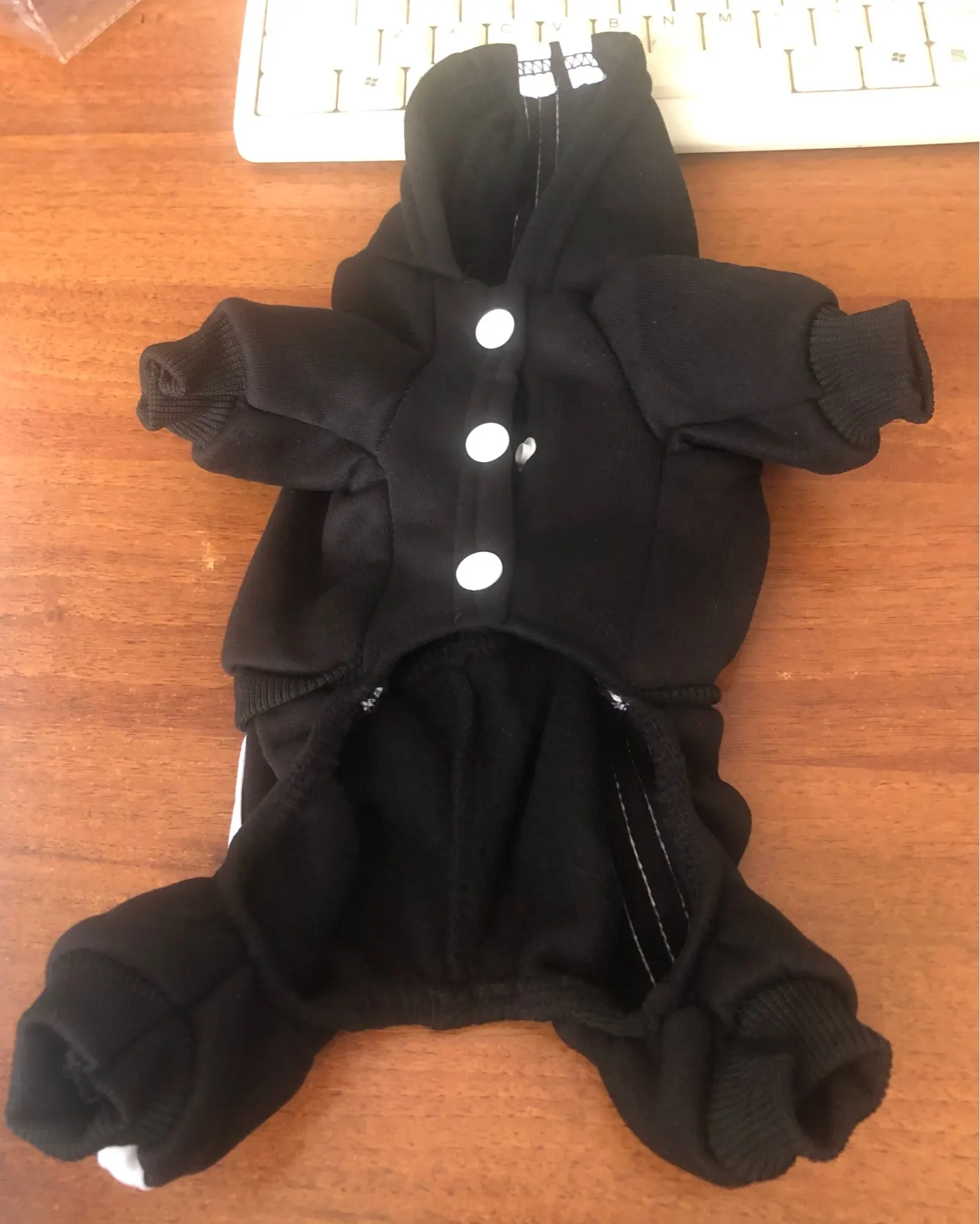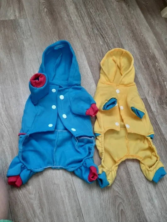 Костюмчики хорошие, очень быстро пришли; единственное, что не очень продуманно как питомцу ходить в туалет. Сзади закрывает аж хвостик...
