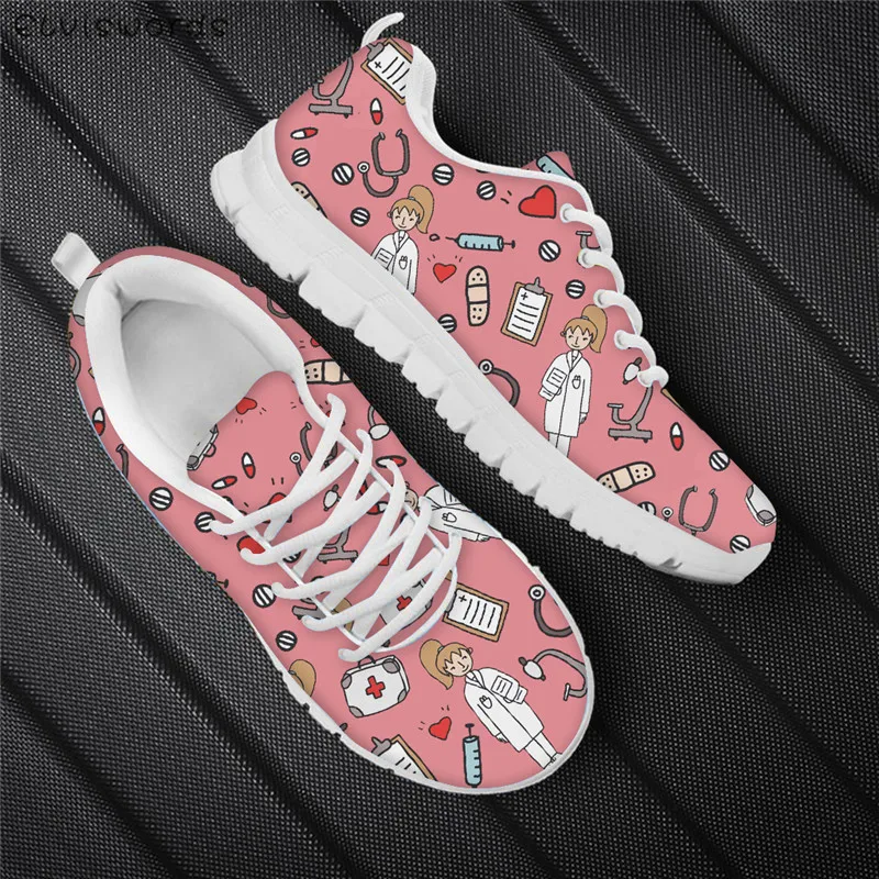 ELVISWORDS модные розовые кроссовки, женская повседневная обувь, эскиз, врачебное оборудование, принт, удобная весенняя обувь на плоской подошве со шнуровкой для девочек