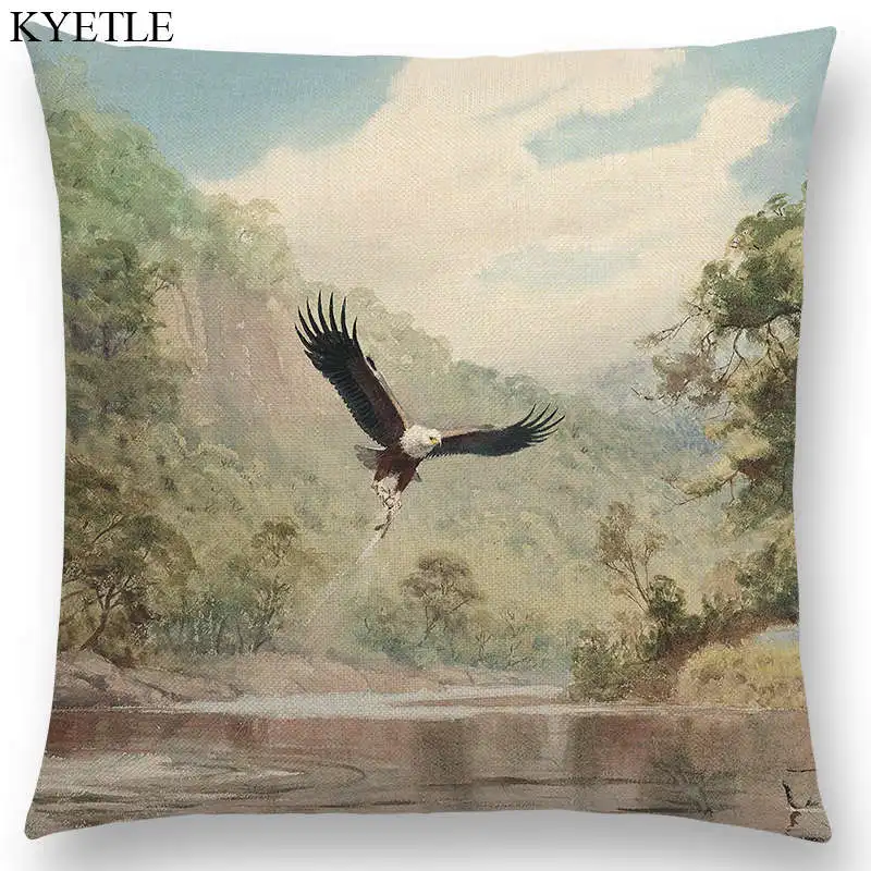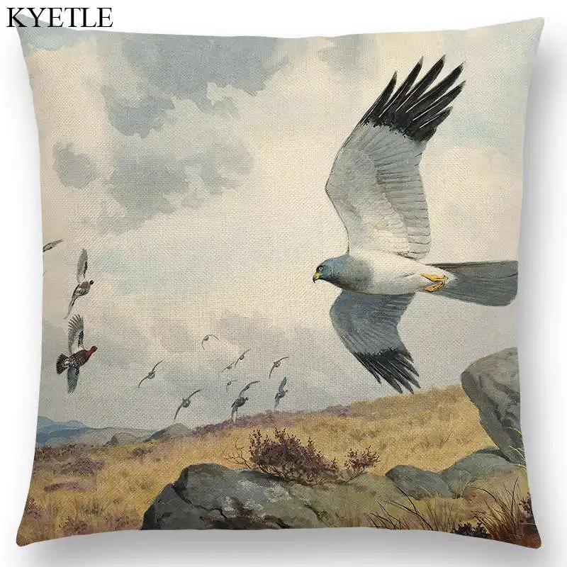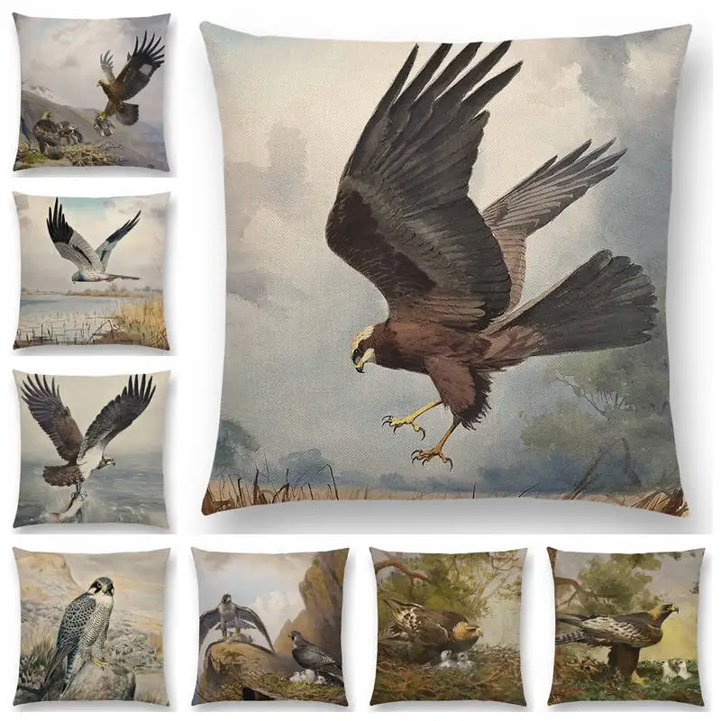 Новинка чехол для диванной подушки с изображением птиц, рэпторов, Орлов, Соколов, вырезанных крыльев, летающих, неба, охоты, корма, реки, луга, масляной живописи