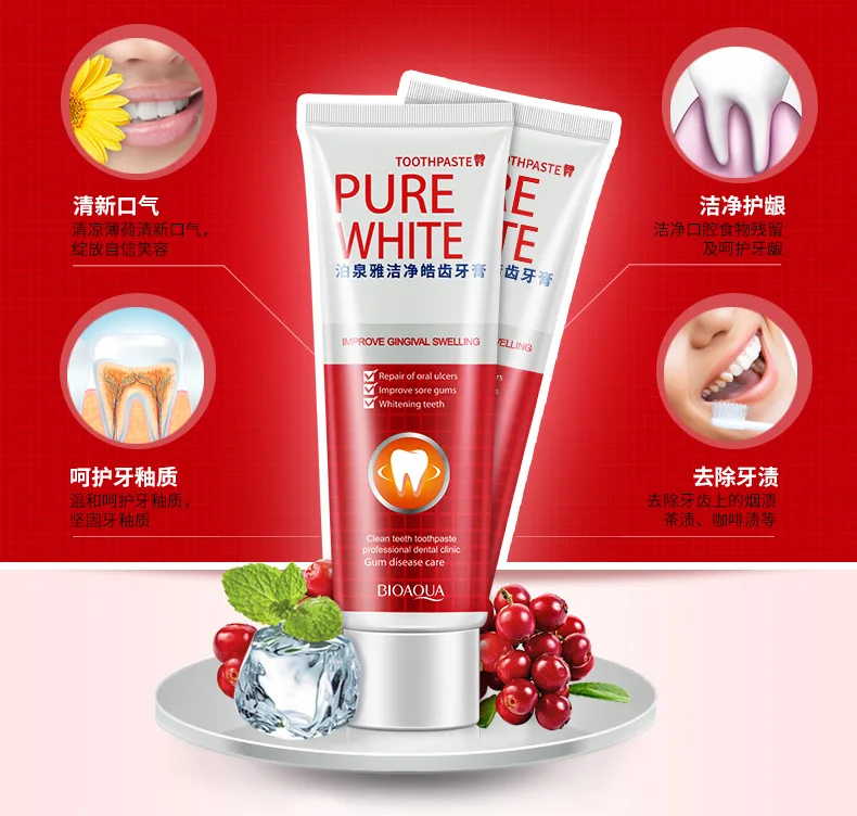 Зубная паста BIOAQUA для отбеливания зубов, уход за клюквенной жвач...