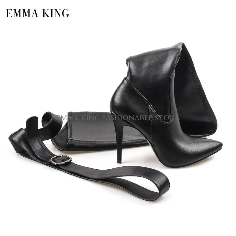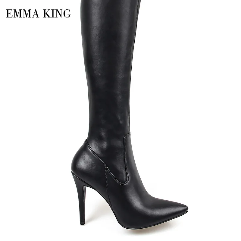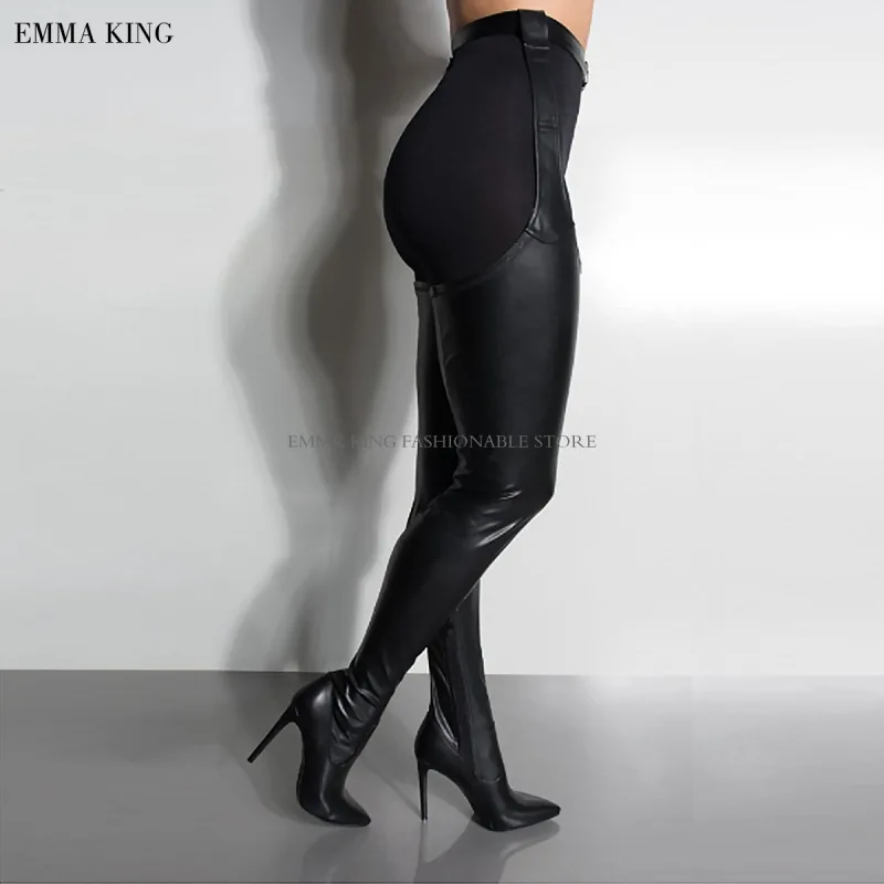 Женские высокие сапоги до бедра, сапоги на шпильке из искусственной кожи с поясом, модные сапоги выше колена на высоком каблуке, женская обувь